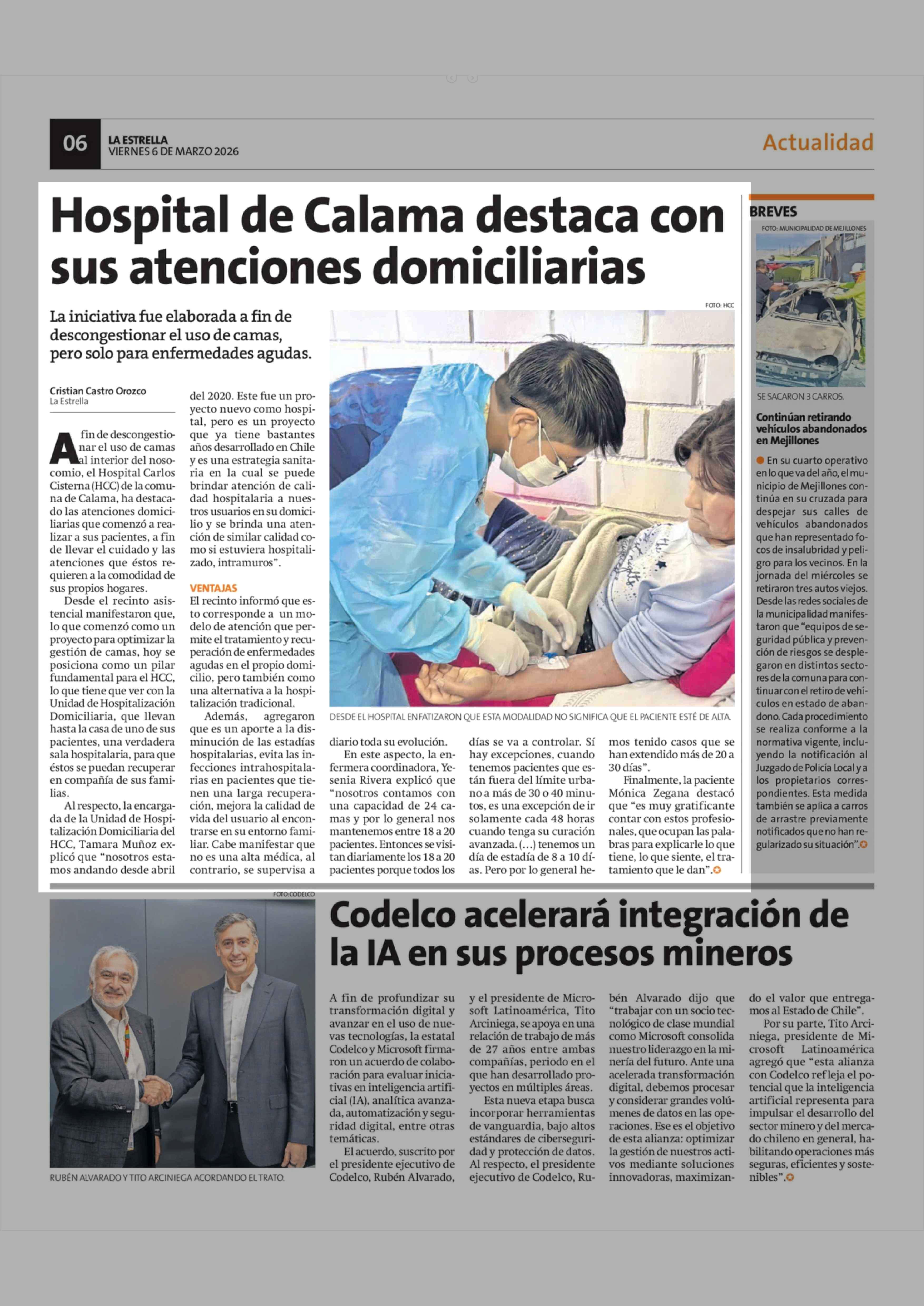 Hospital de Calama destaca con sus atenciones domiciliarias 06-03-2026 La Estrella de Antofagasta |
