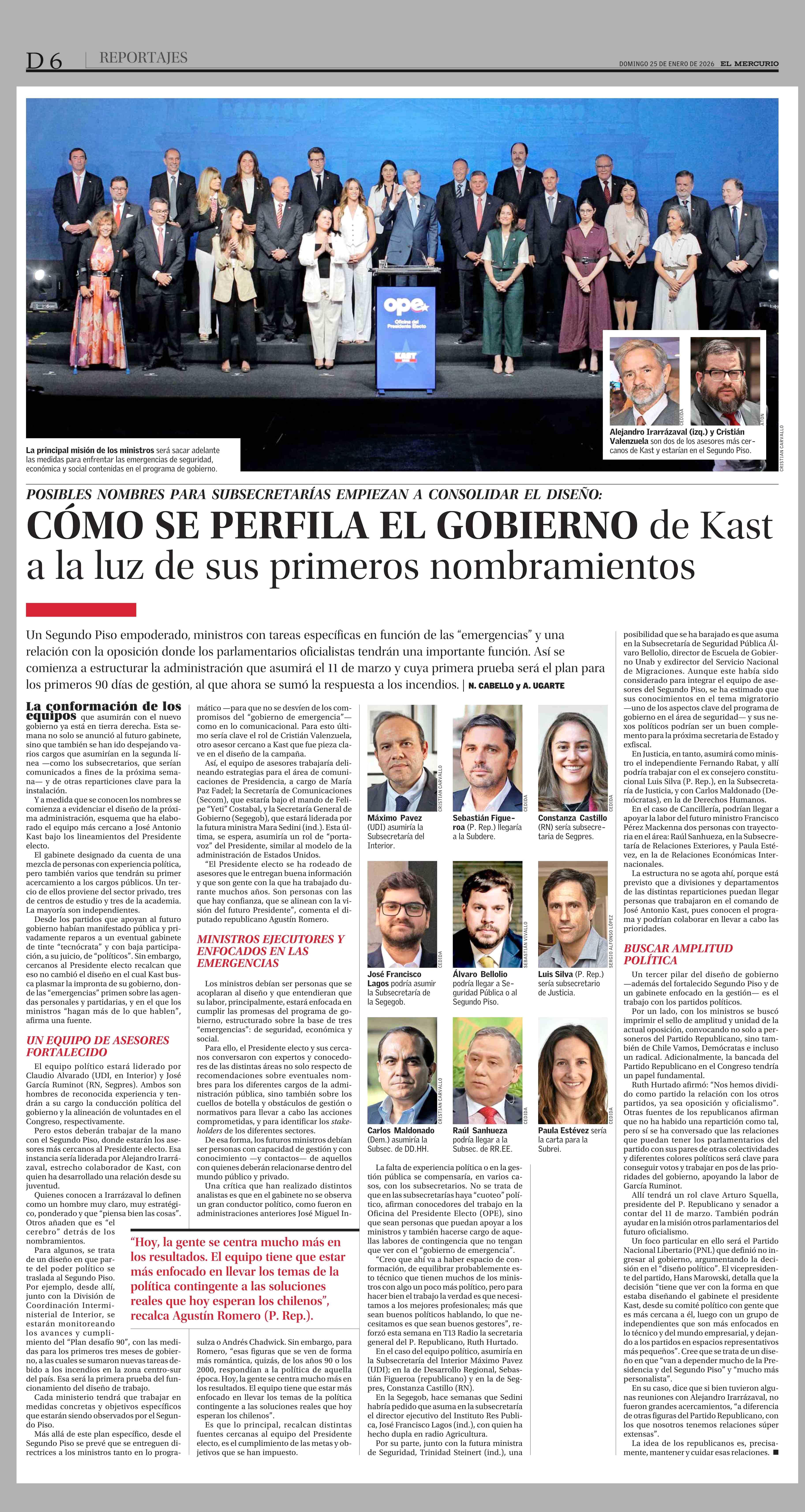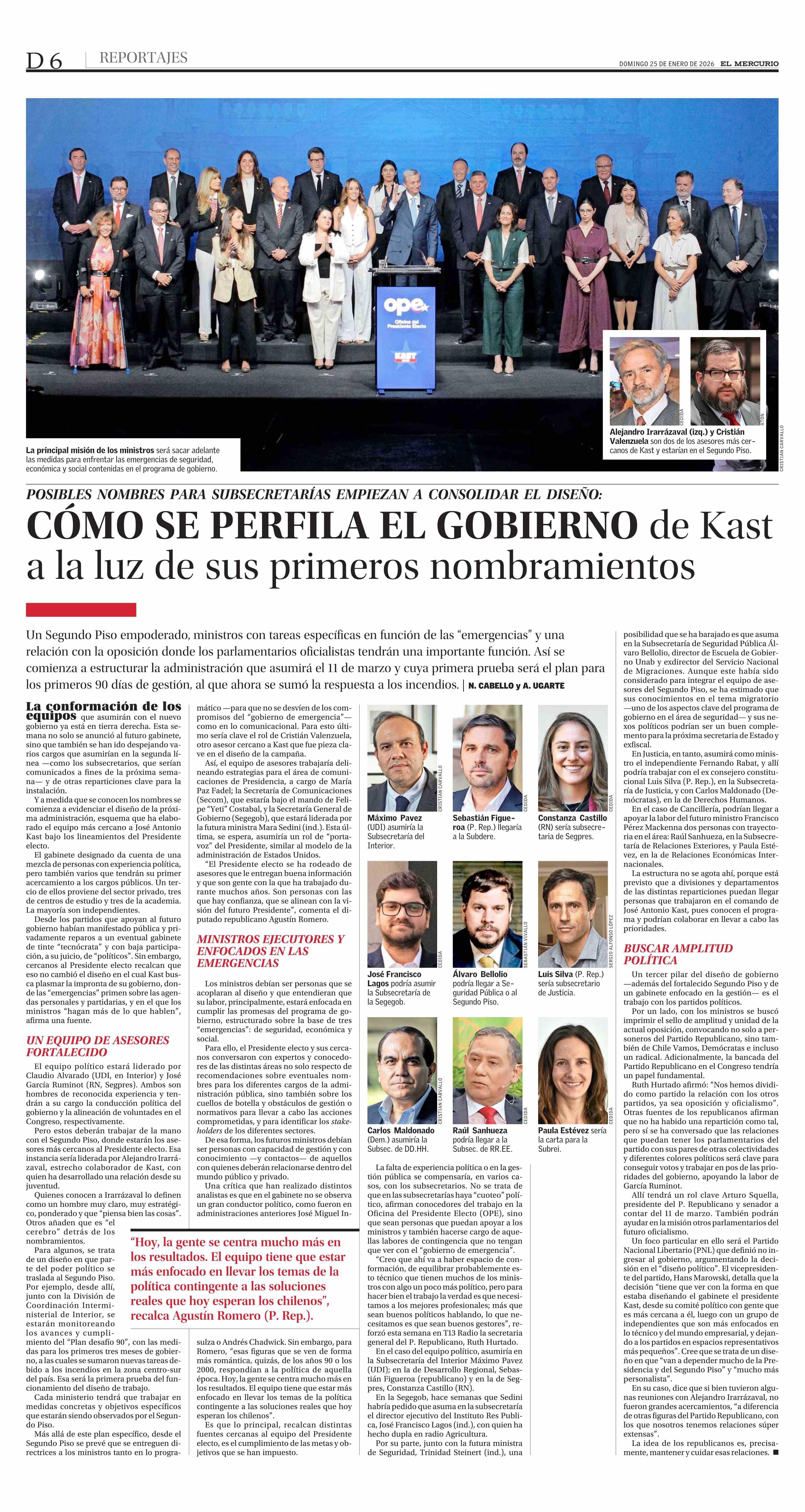 CÓMO SE PERFILA EL GOBIERNO de Kast a la luz de sus primeros nombramientos 25-01-2026 El Mercurio |