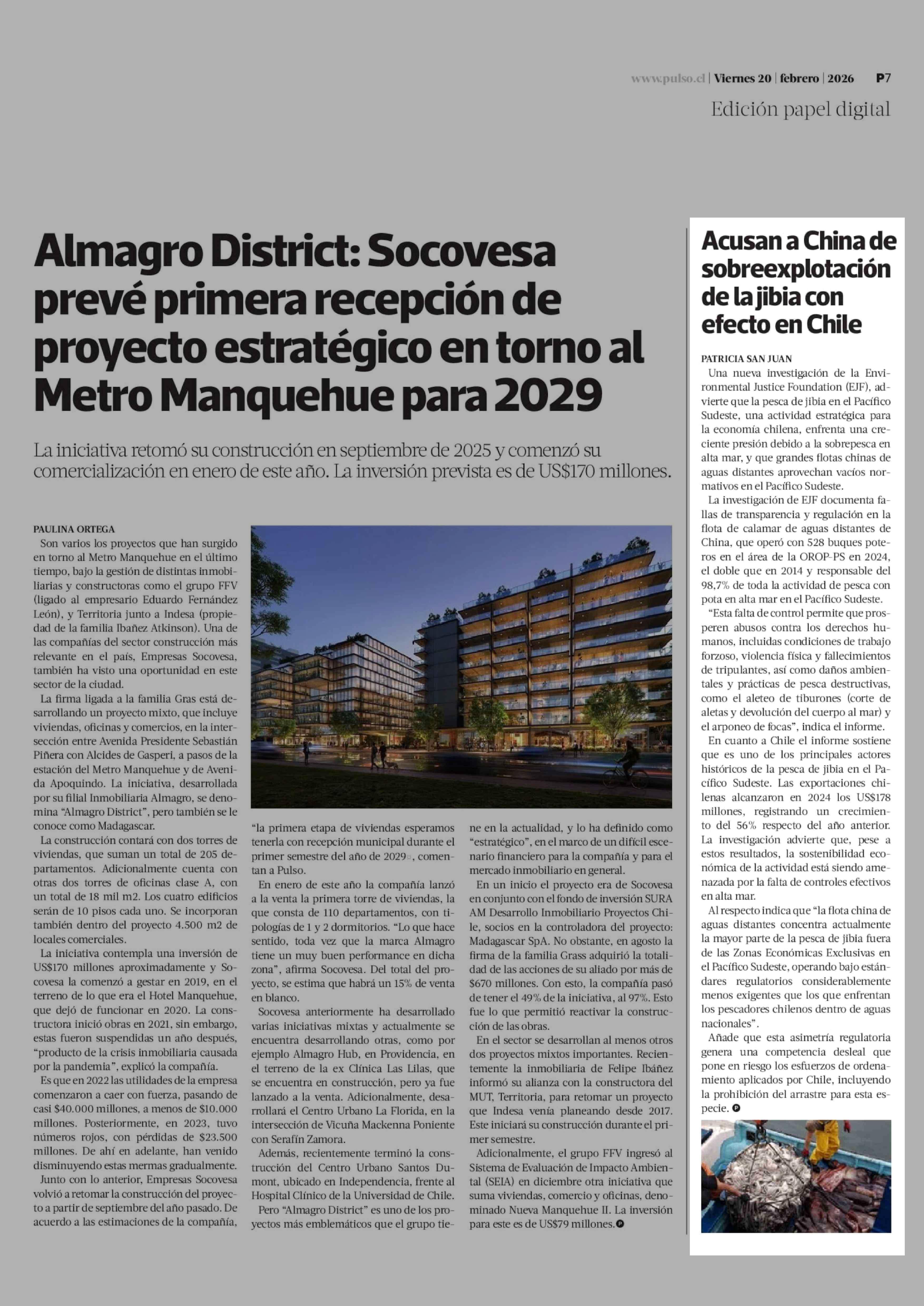 Acusan a China de sobreexplotación de la jibia con efecto en Chile 20-02-2026 La Tercera |