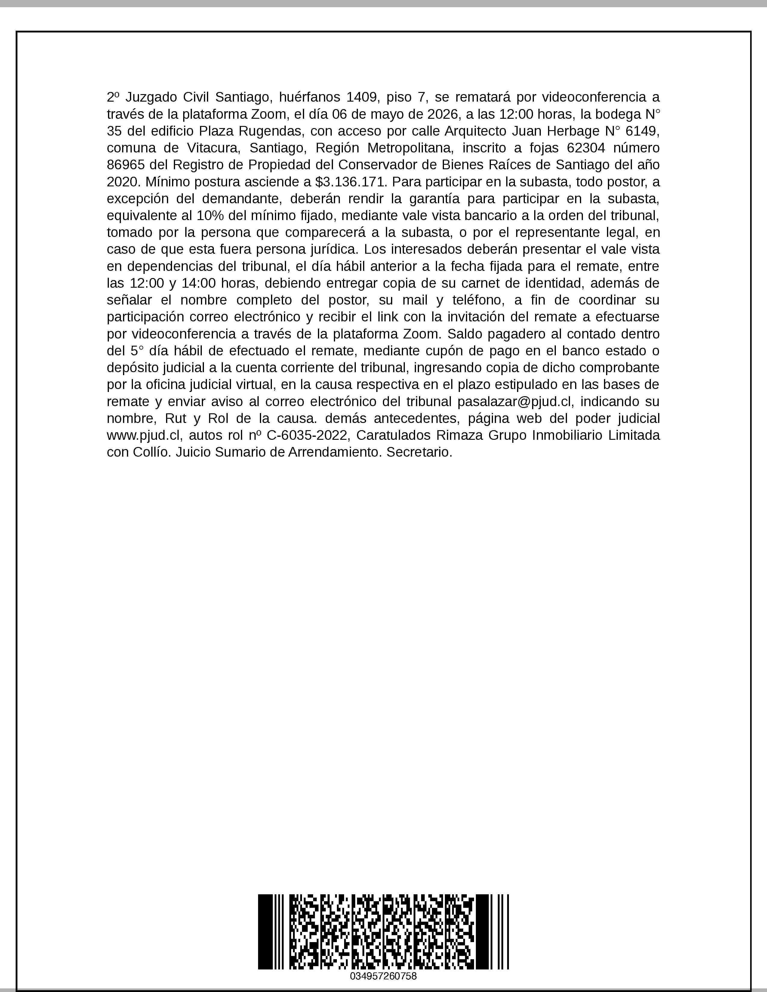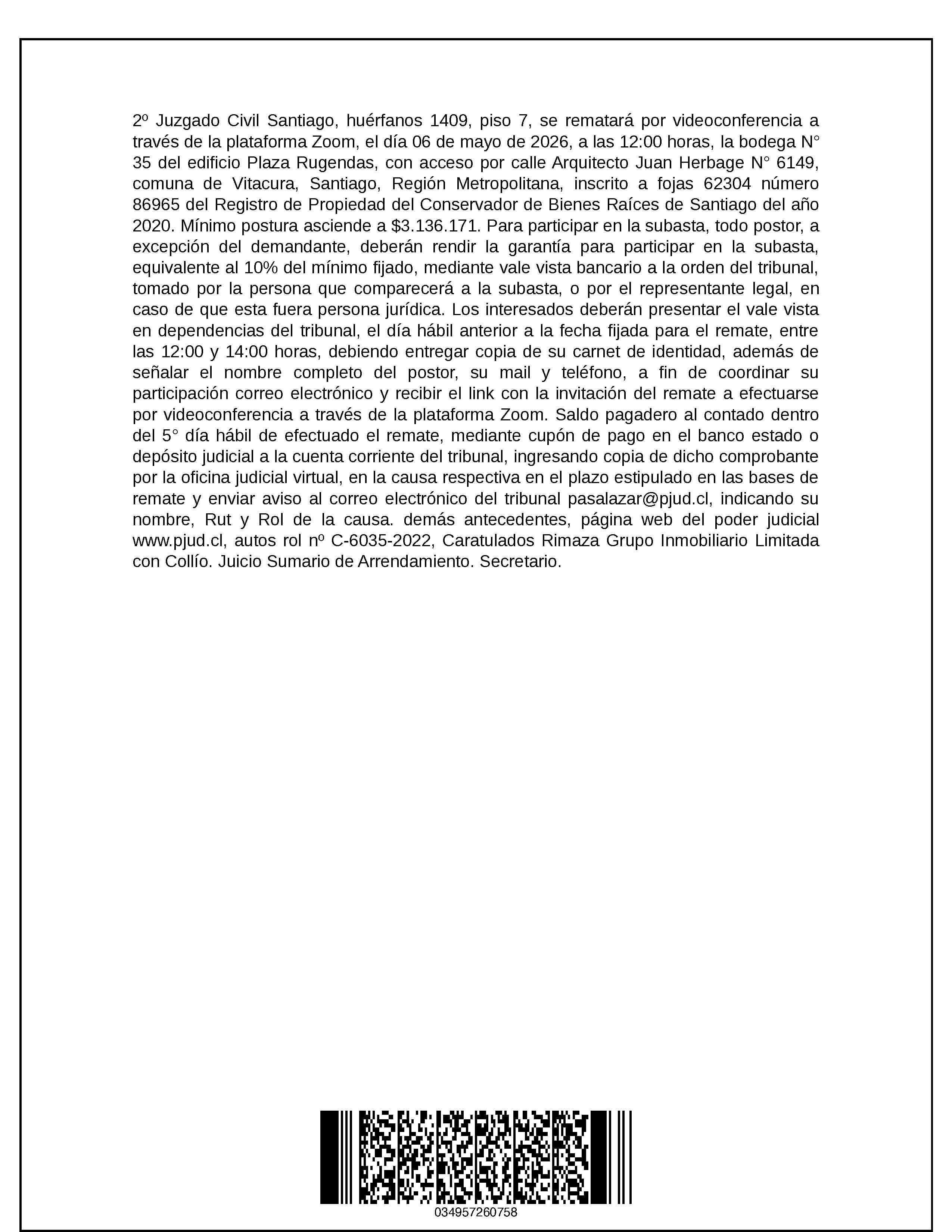AVISO LICITACIONES: REMATE 09-04-2026 El Mostrador - Avisos Legales |