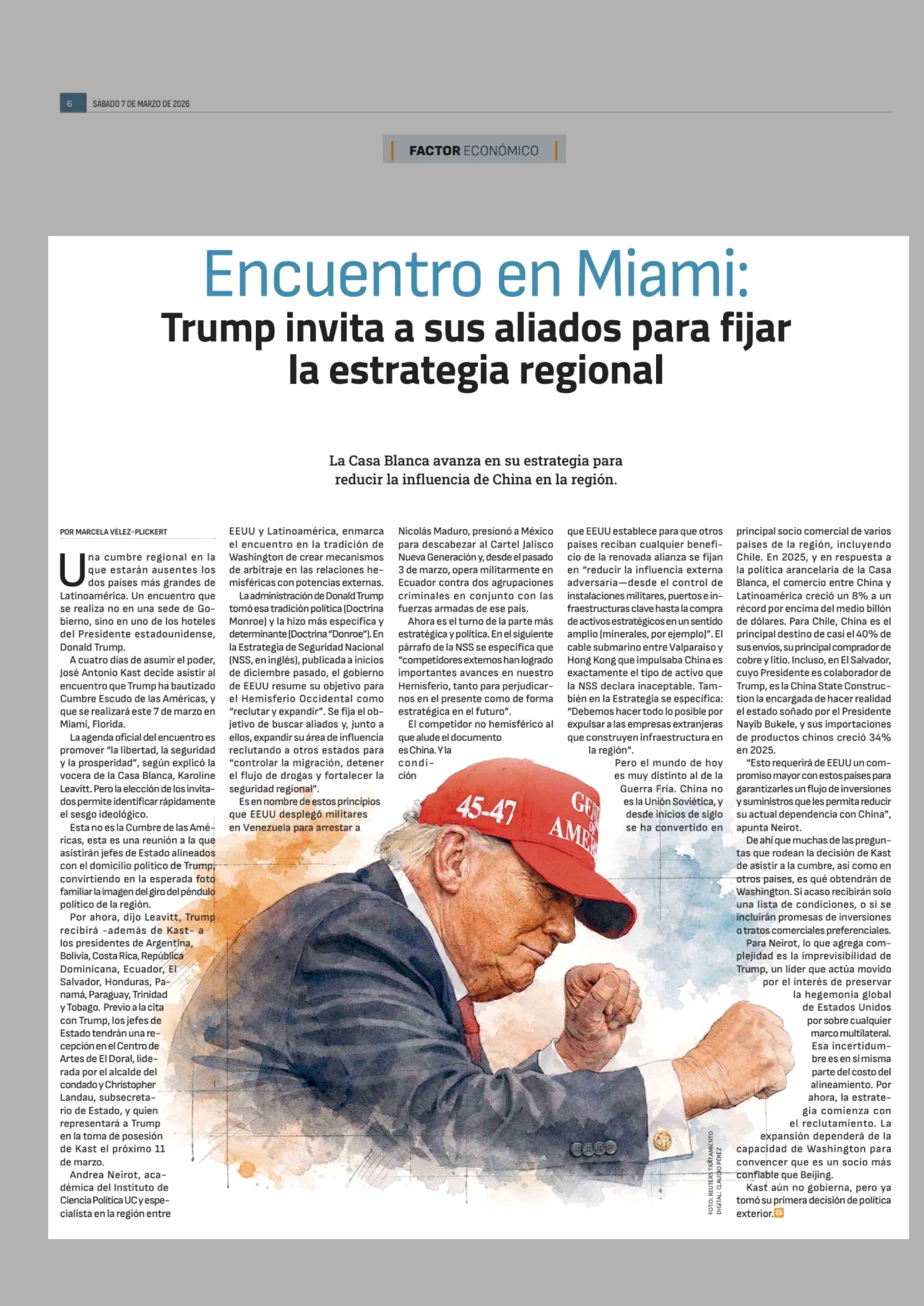 Encuentro en Miami: Trump invita a sus aliados para fijar la estrategia regional 07-03-2026 Diario Financiero |