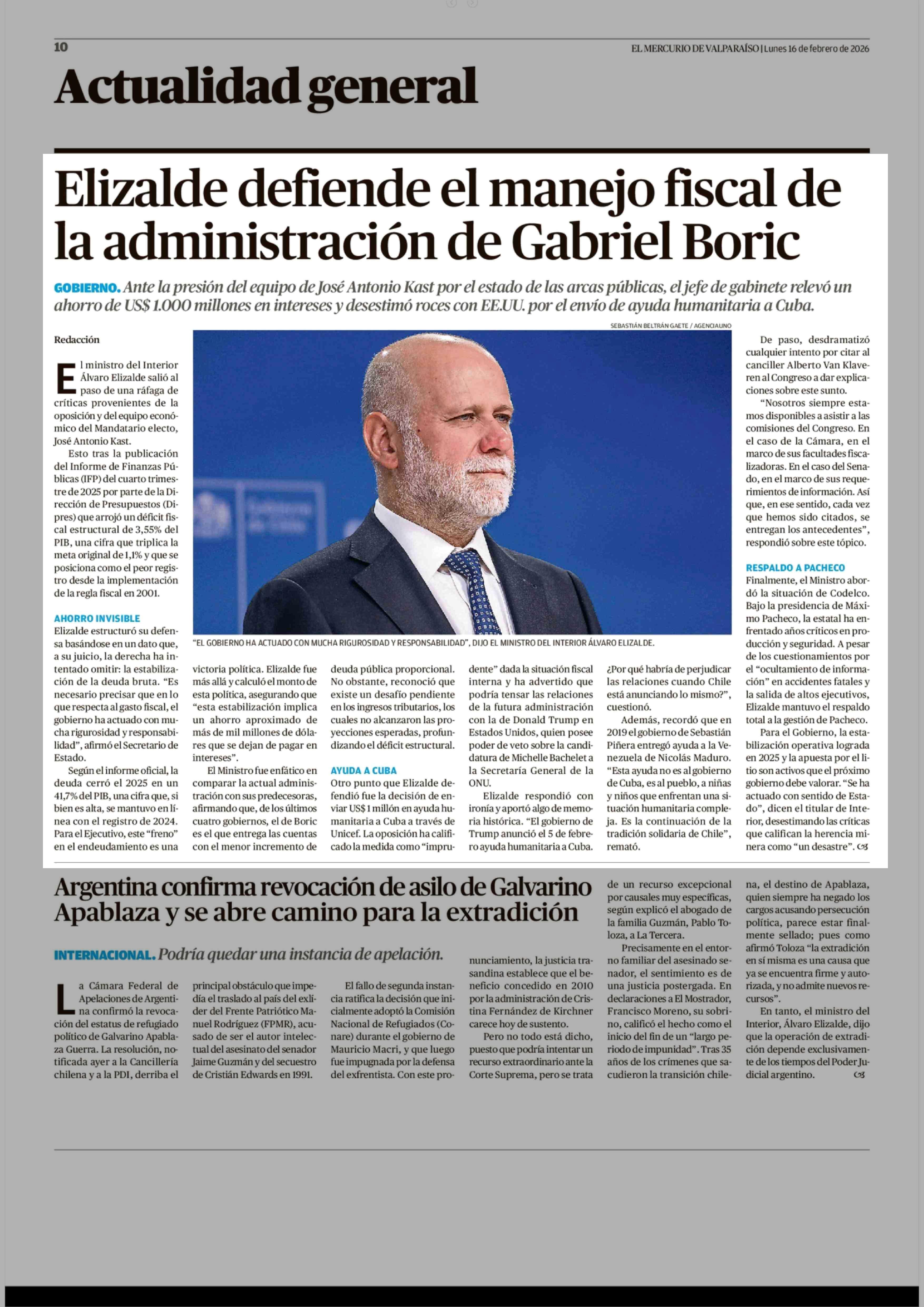 Título: Elizalde defiende el manejo fiscal de la administración de Gabriel Boric