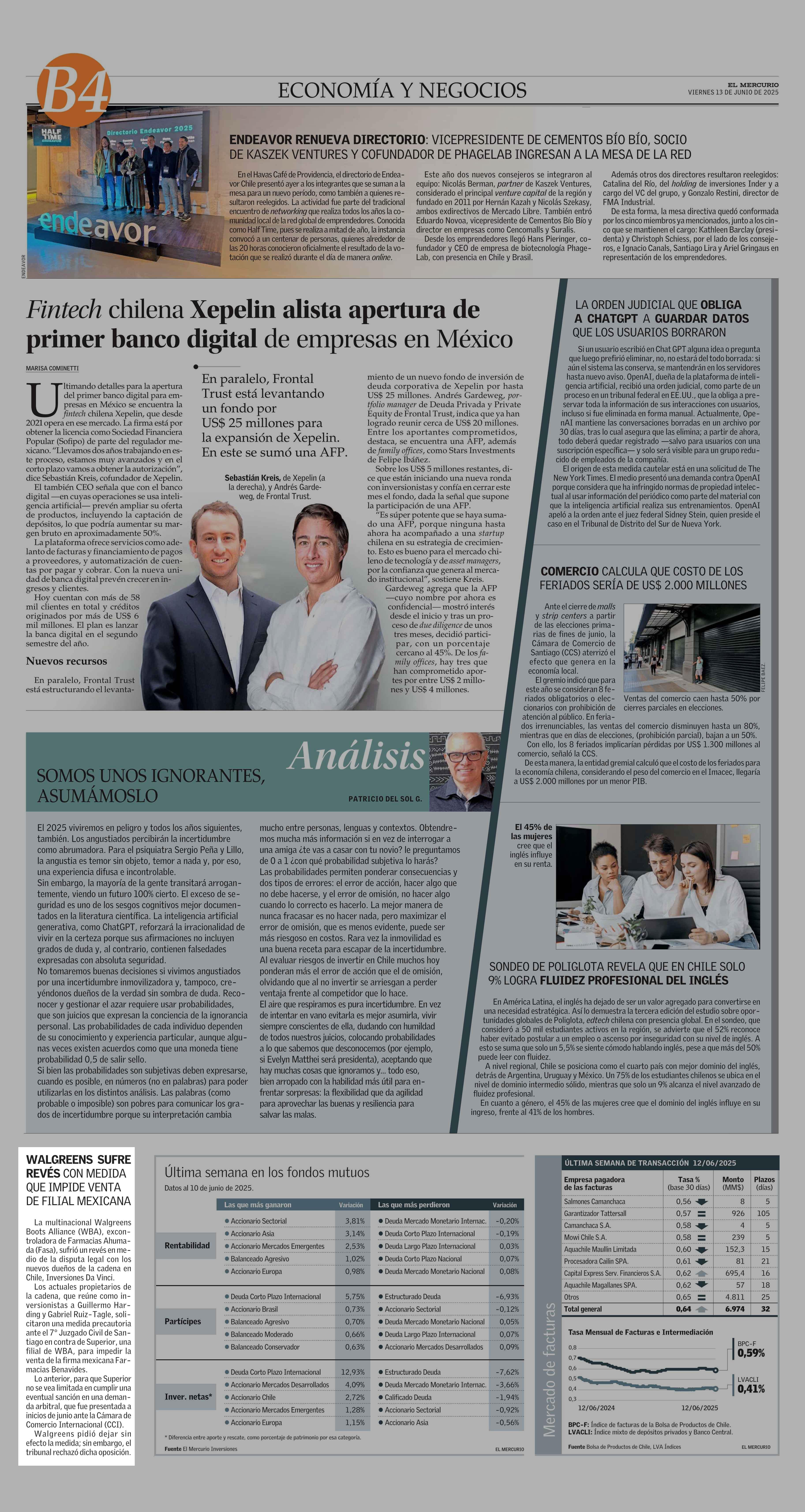 WALGREENS SUFRE REVÉS CON MEDIDA QUE IMPIDE VENTA DE FILIAL MEXICANA 13-06-2025 El Mercurio |