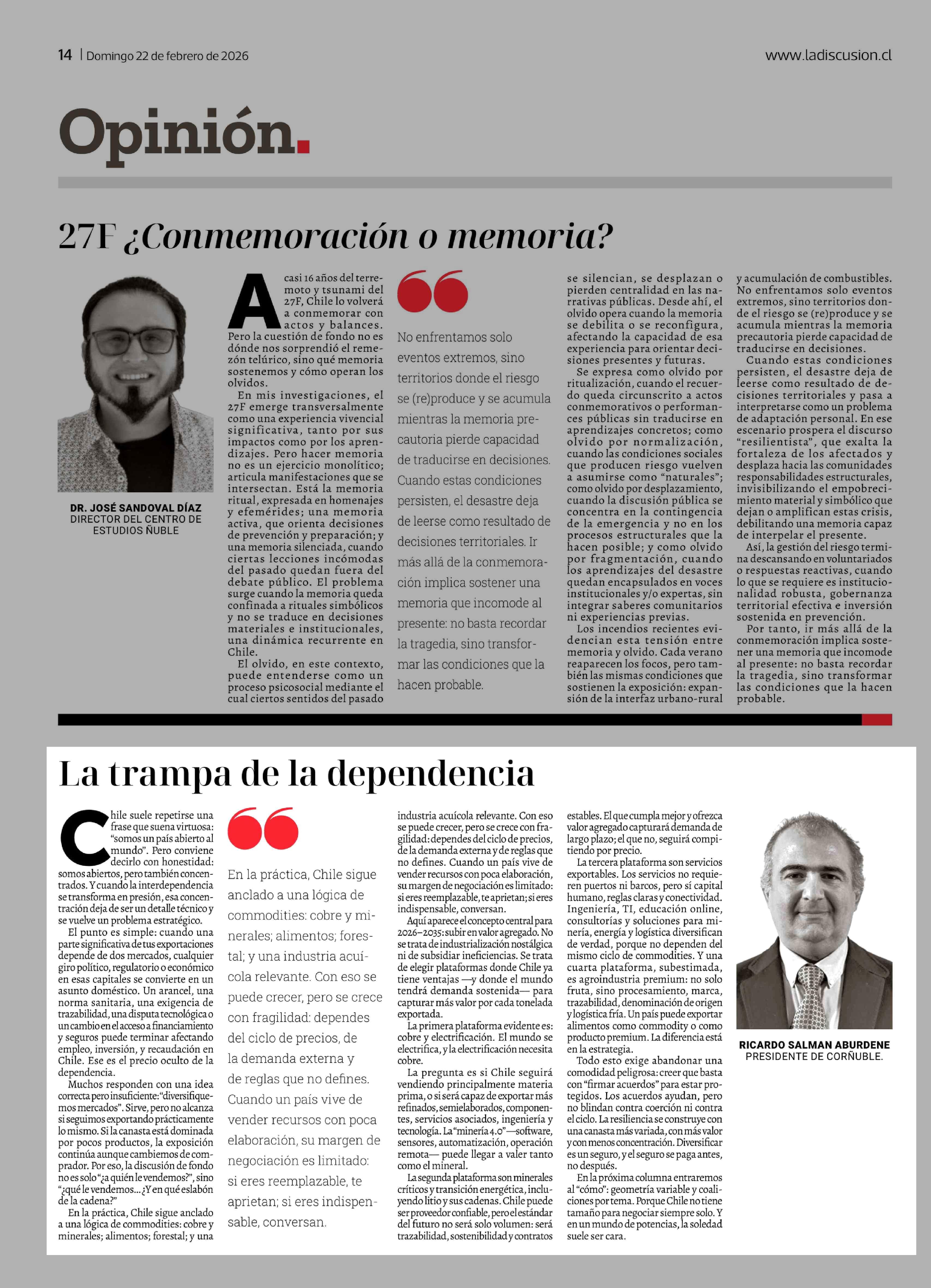 | Fecha: | 22-02-2026 | Sector: | Columnas de Opinión | Región: | Región del Ñuble |