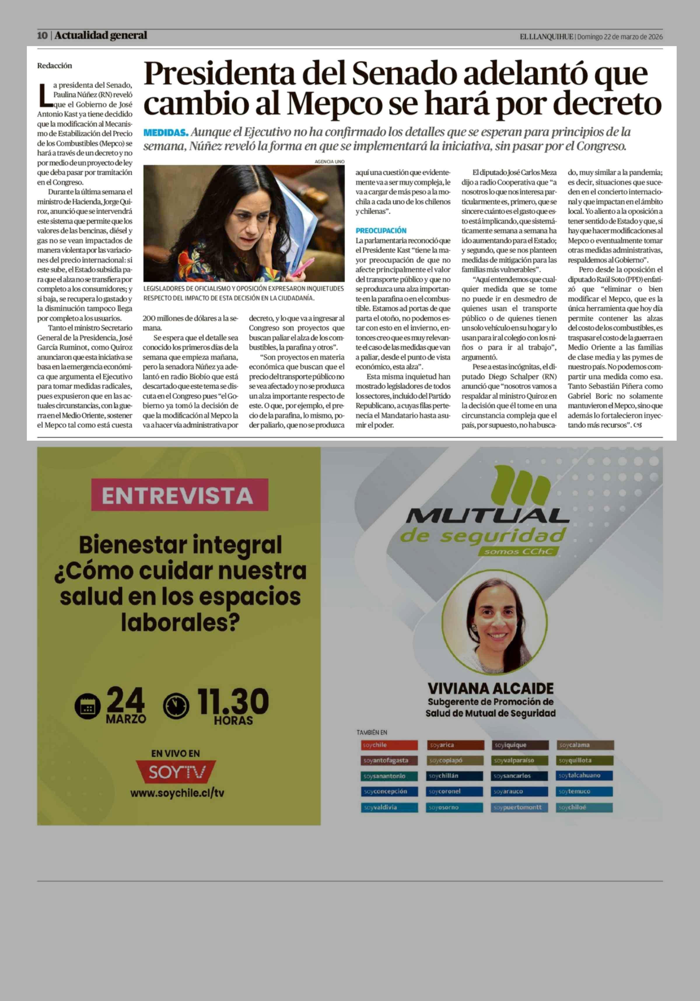 Título: Presidenta del Senado adelantó que cambio al Mepco se hará por decreto