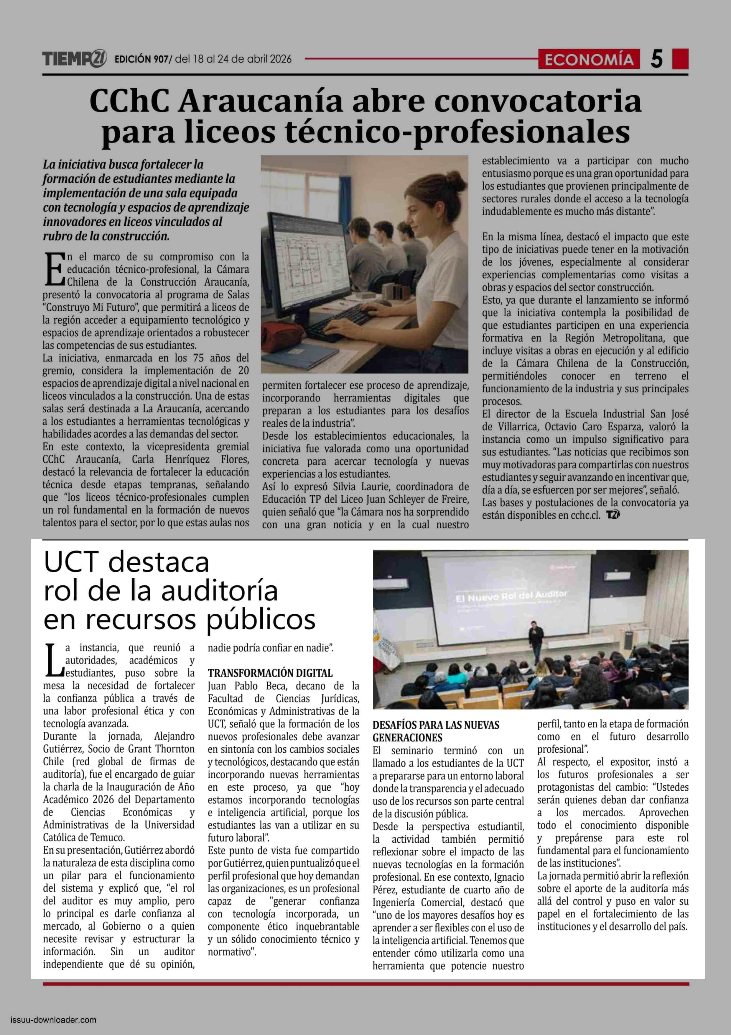 UCT destaca rol de la auditoría en recursos públicos 18-04-2026 Tiempo 21 |