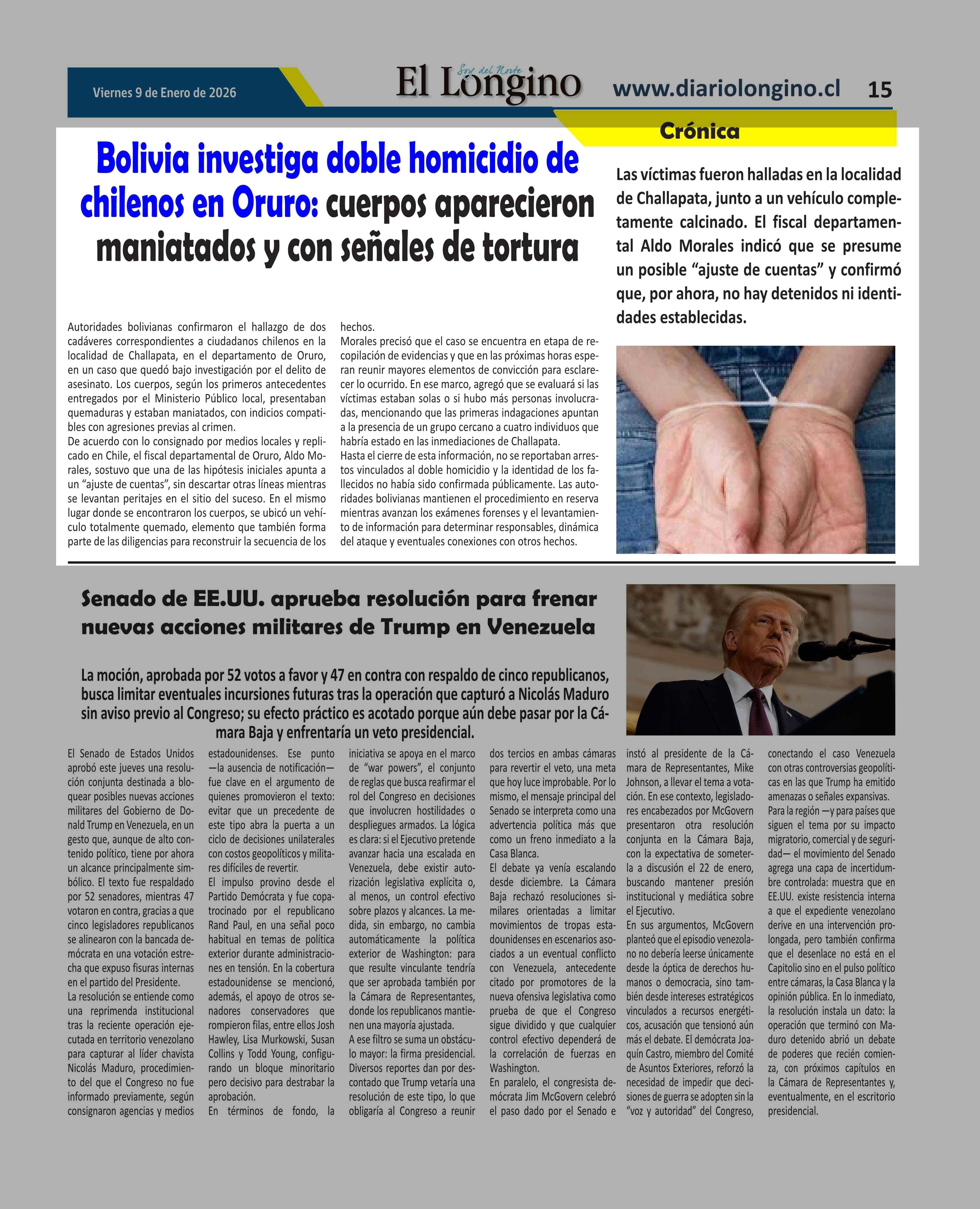 Bolivia investiga doble homicidio de chilenos en Oruro: cuerpos aparecieron maniatados y con señales de tortura 09-01-2026 El Longino |