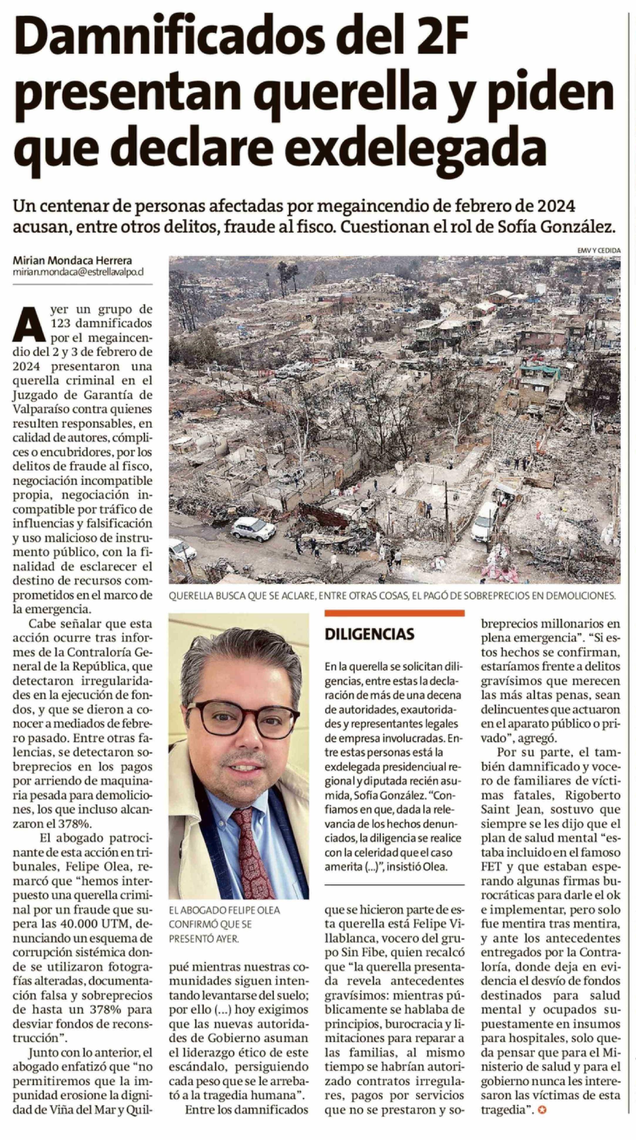 Damnificados del 2F presentan querella y piden que declare exdelegada 13-03-2026 La Estrella de Valparaíso |