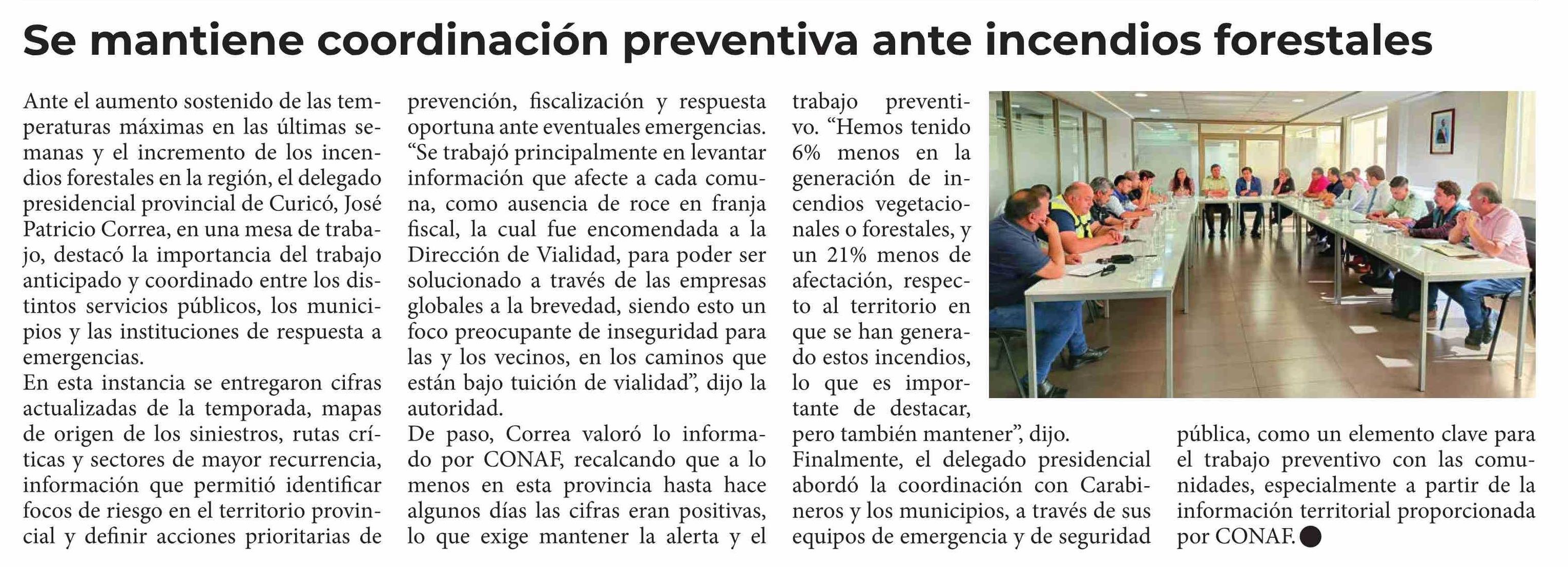 Se mantiene coordinación preventiva ante incendios forestales 18-01-2026 Diario Talca |