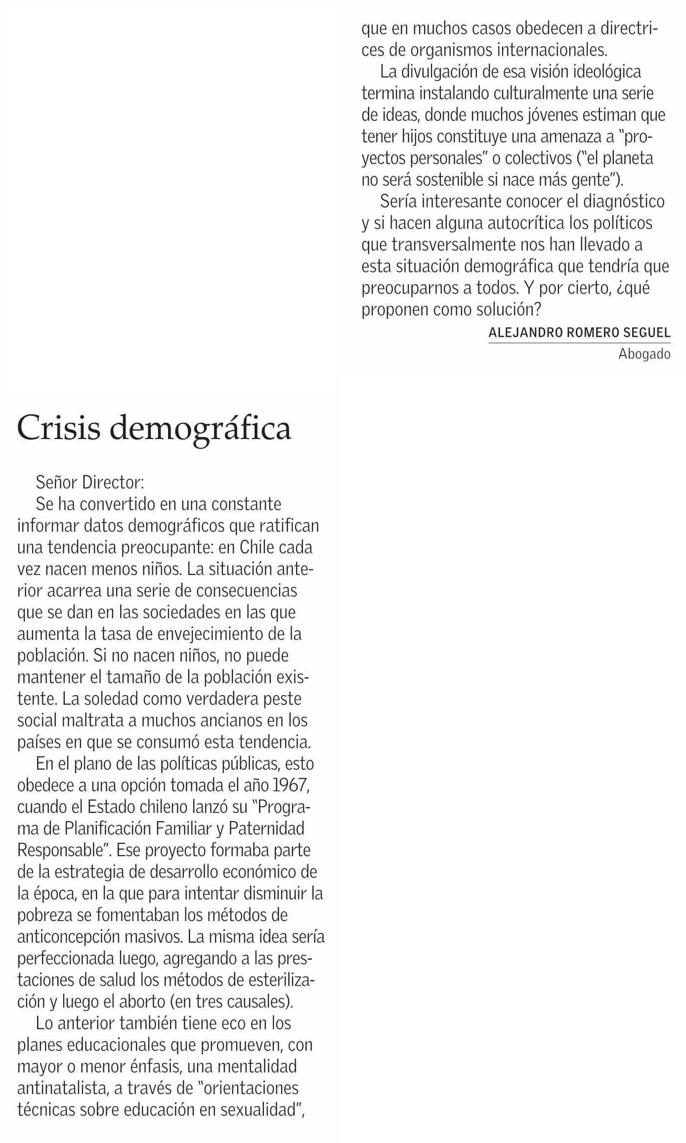 | Título: | Cartas: Crisis demográfica |
