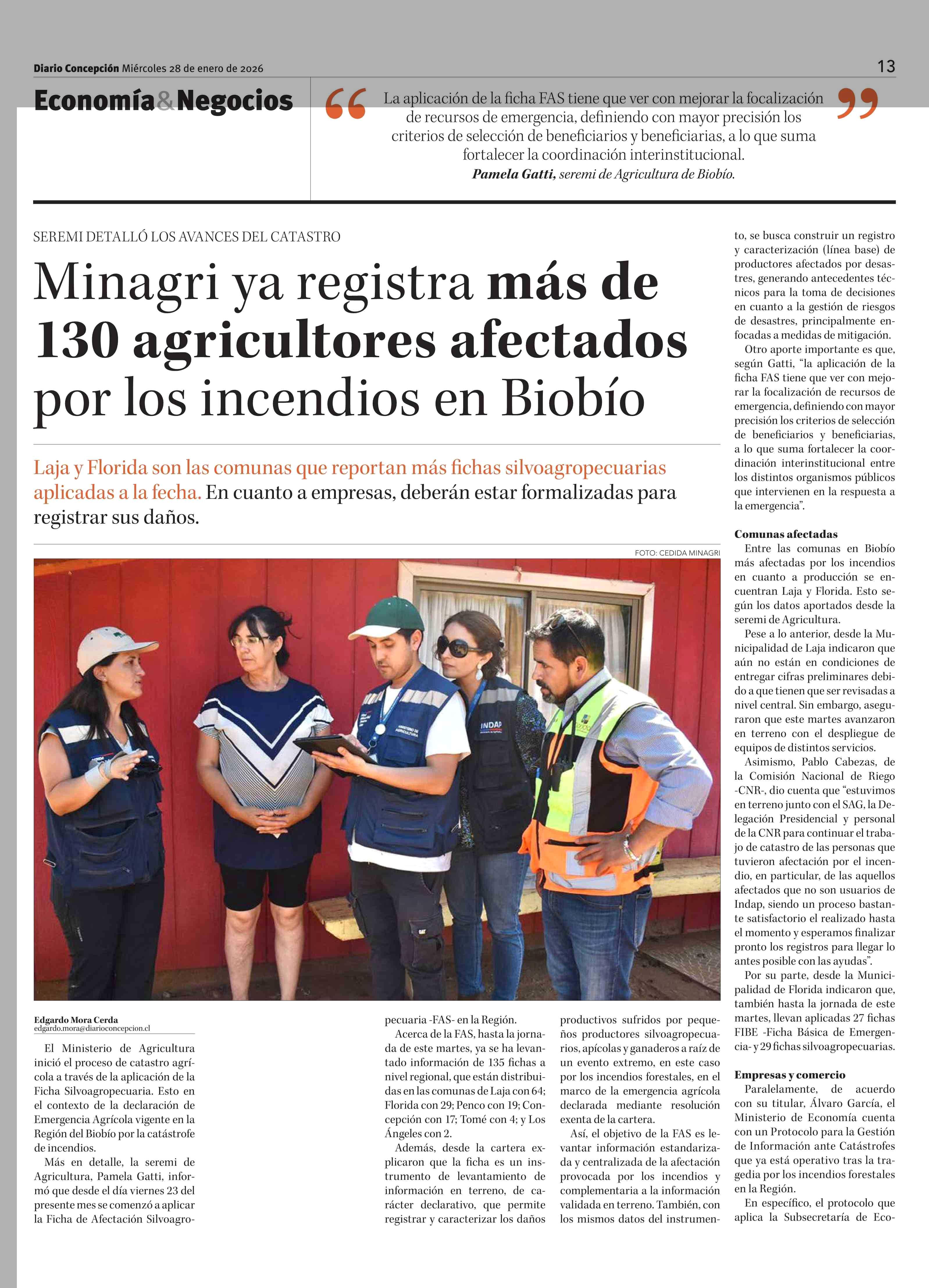 Título: Minagri ya registra más de 130 agricultores afectados por los incendios en Biobío