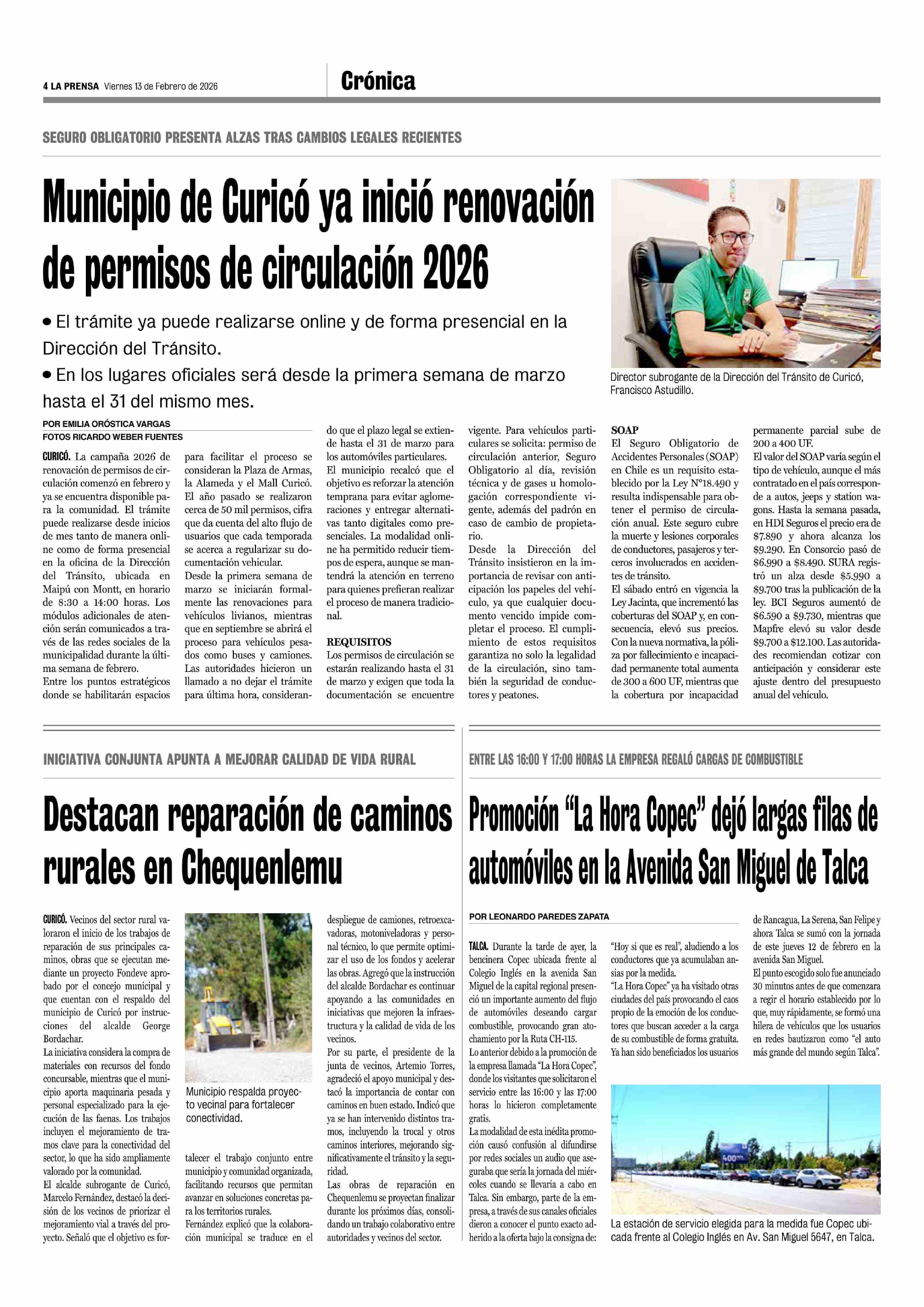 Promoción “La Hora Gopec” dejó largas filas de automóviles en la Avenida San Miguel de Talca 13-02-2026 La Prensa de Curicó |