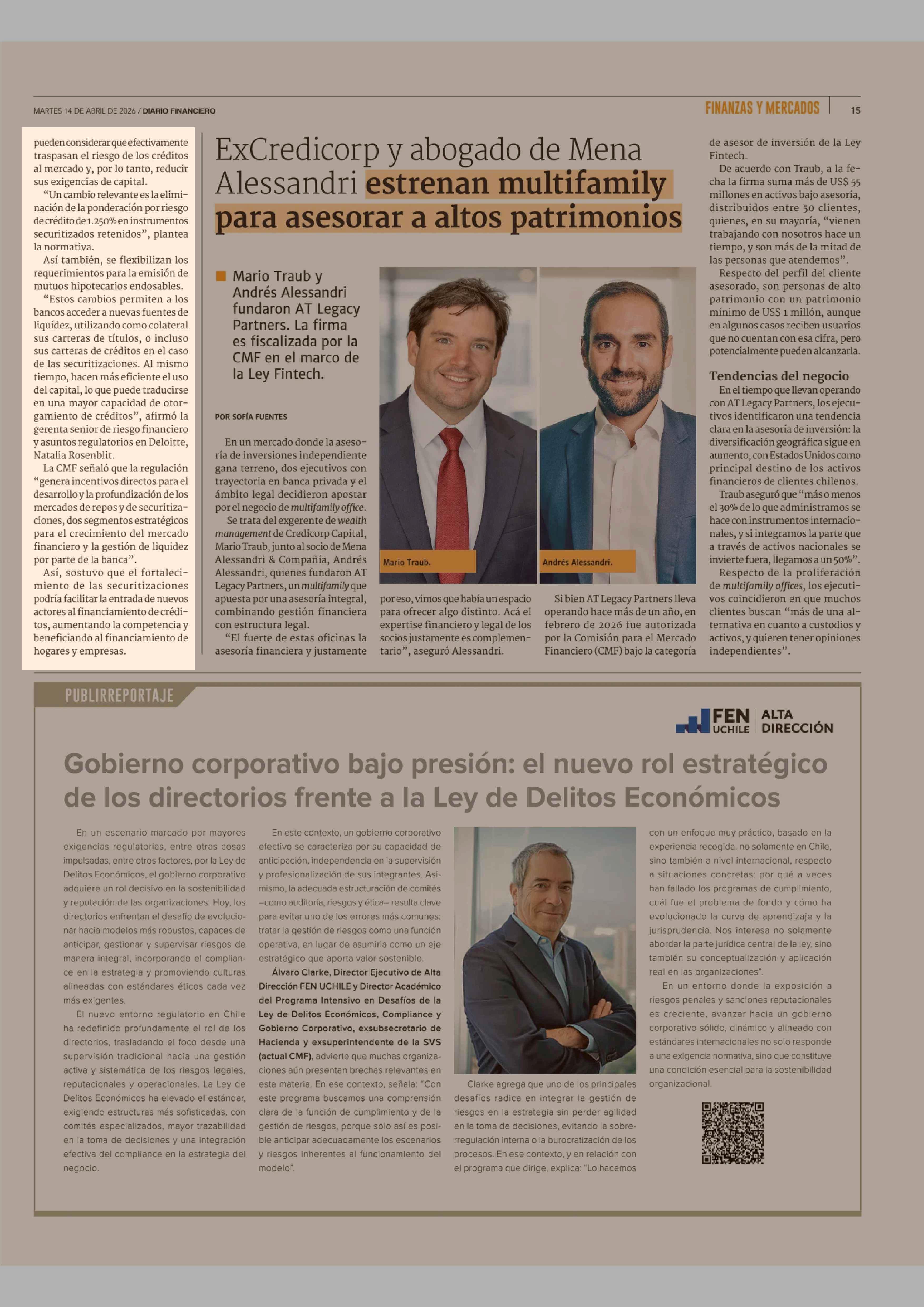 CMF avanza en agenda de mercado con normativa que impulsa la liquidez bancaria y uso eficiente del capital 14-04-2026 Diario Financiero |