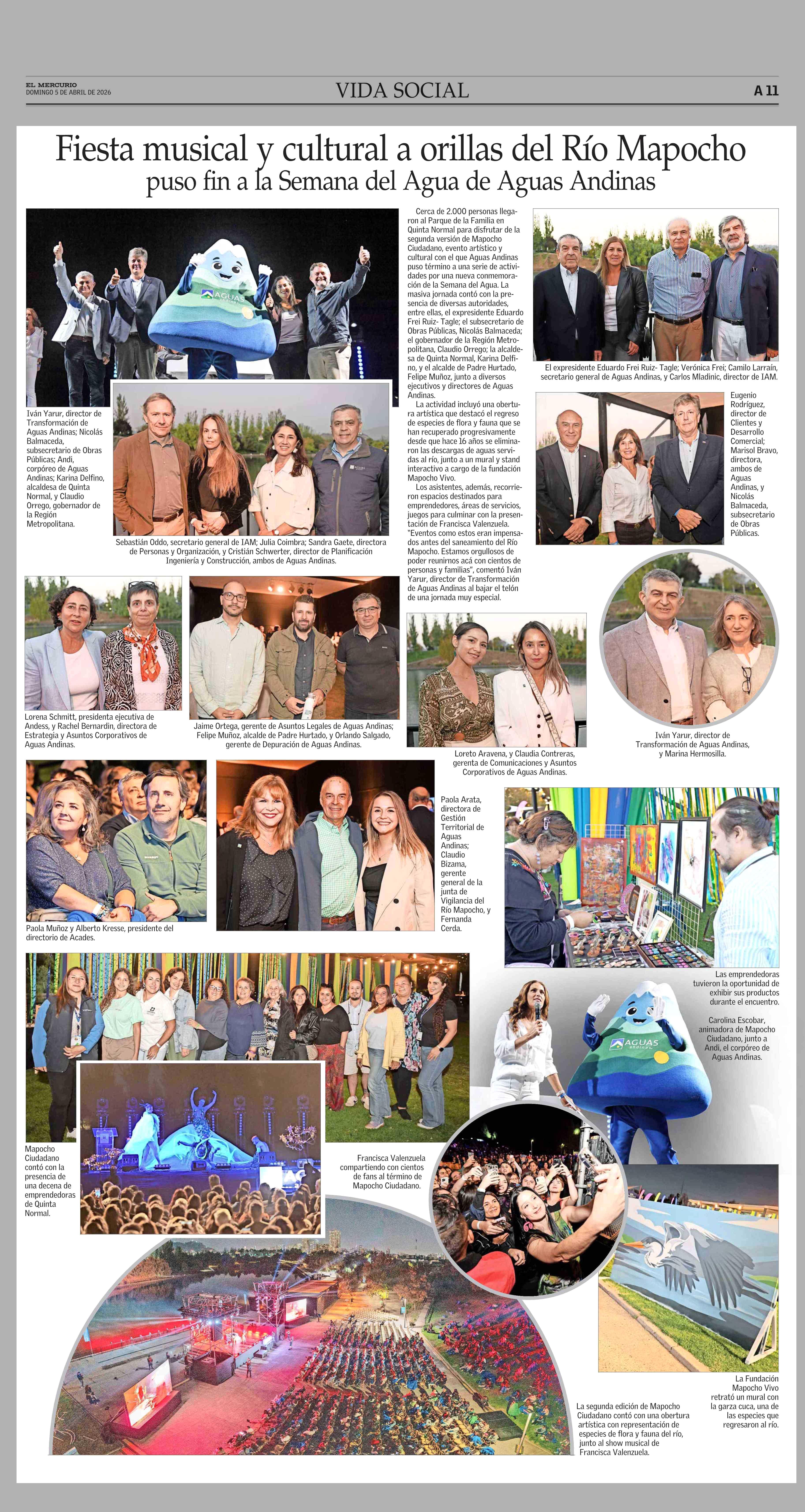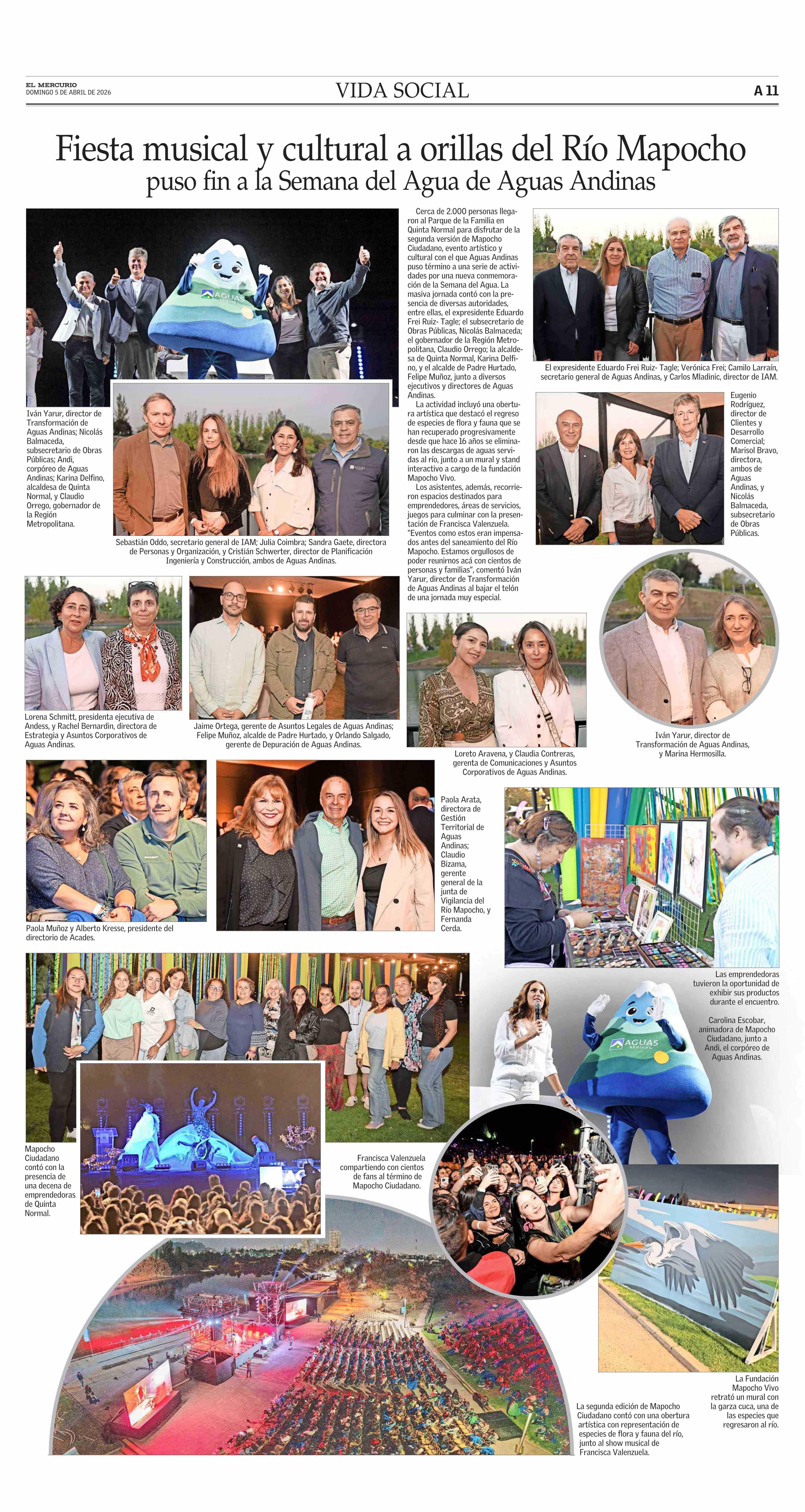 Título: Fiesta musical y cultural a orillas del Río Mapocho puso fin a la Semana del Agua de Aguas Andinas