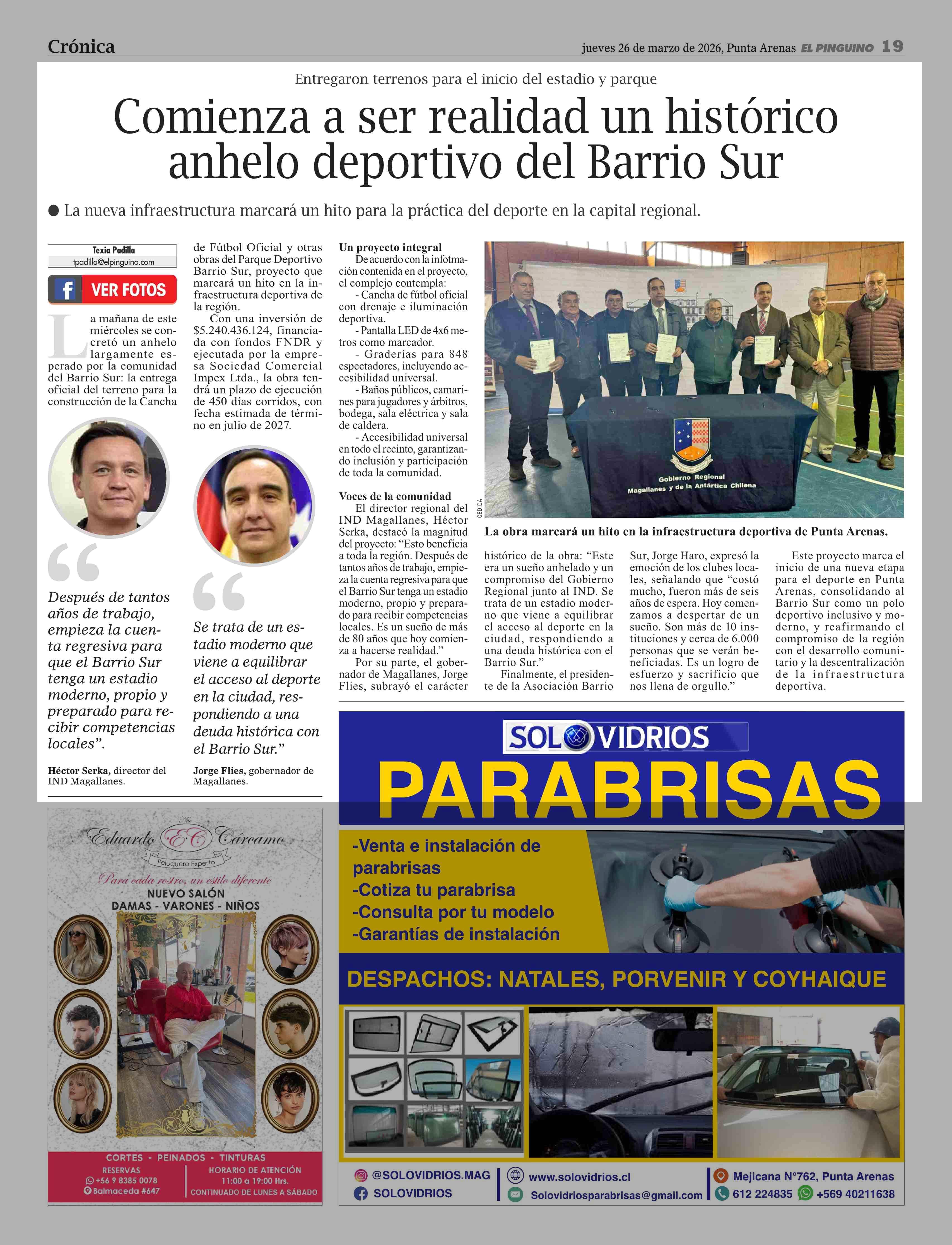 | Fecha: | 26-03-2026 | Sector: | Noticia general | Región: | Región de Magallanes y de la Antártica Chilena |