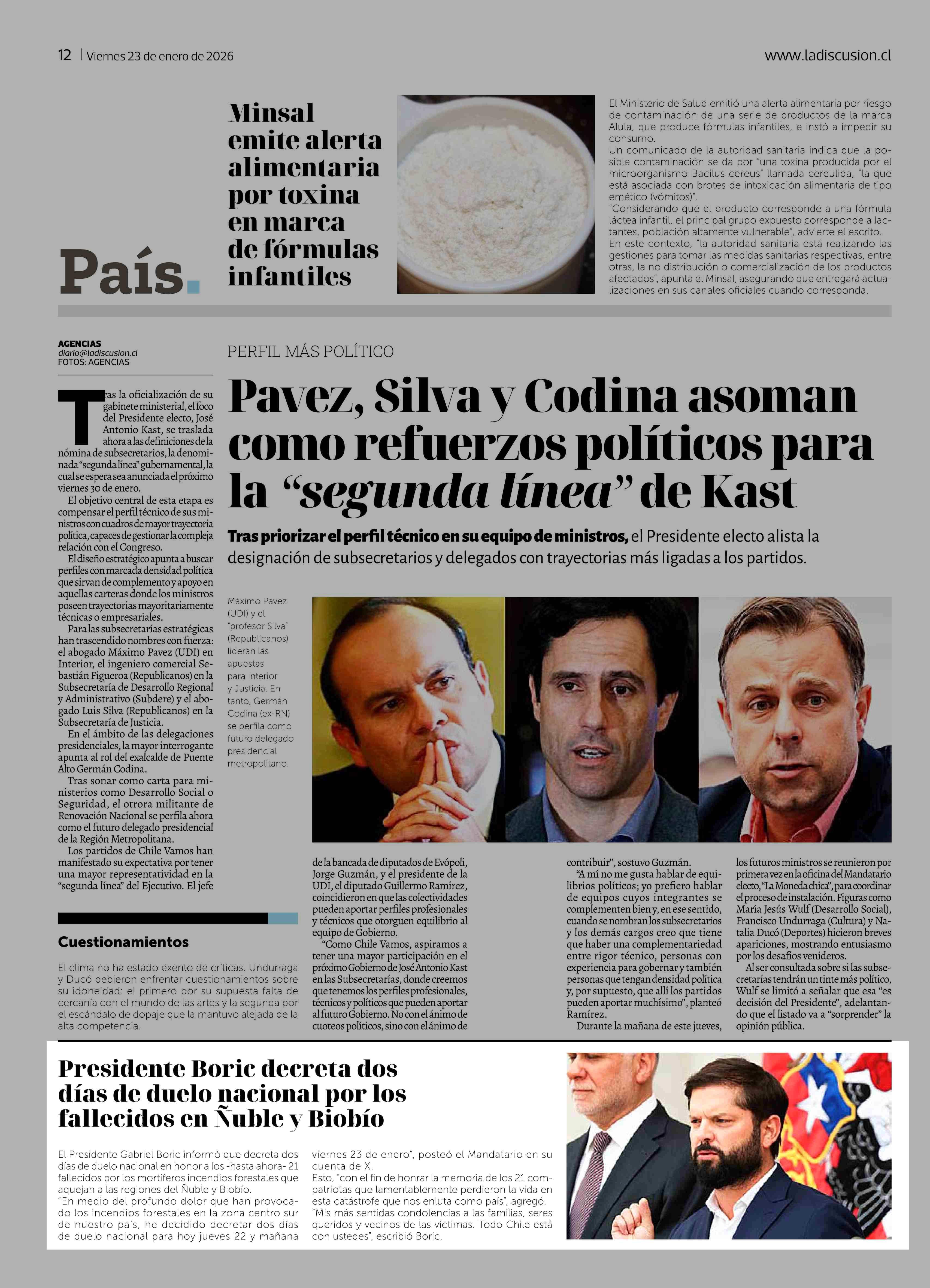 Presidente Boric decreta dos días de duelo nacional por los fallecidos en Ñuble y Biobio 23-01-2026 La Discusión |