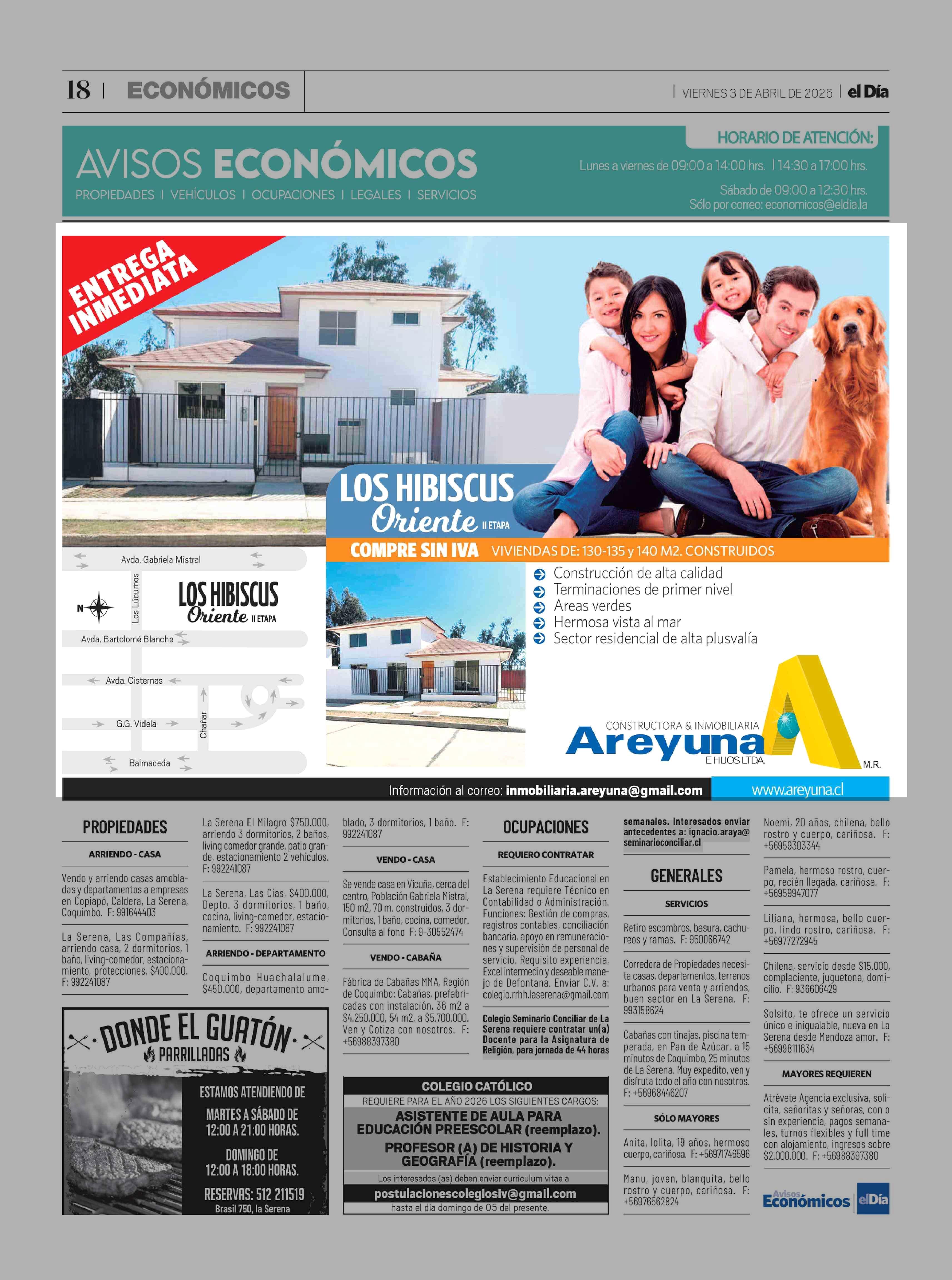 Aviso Inmobiliario: PUBLICIDAD 03-04-2026 El Día |
