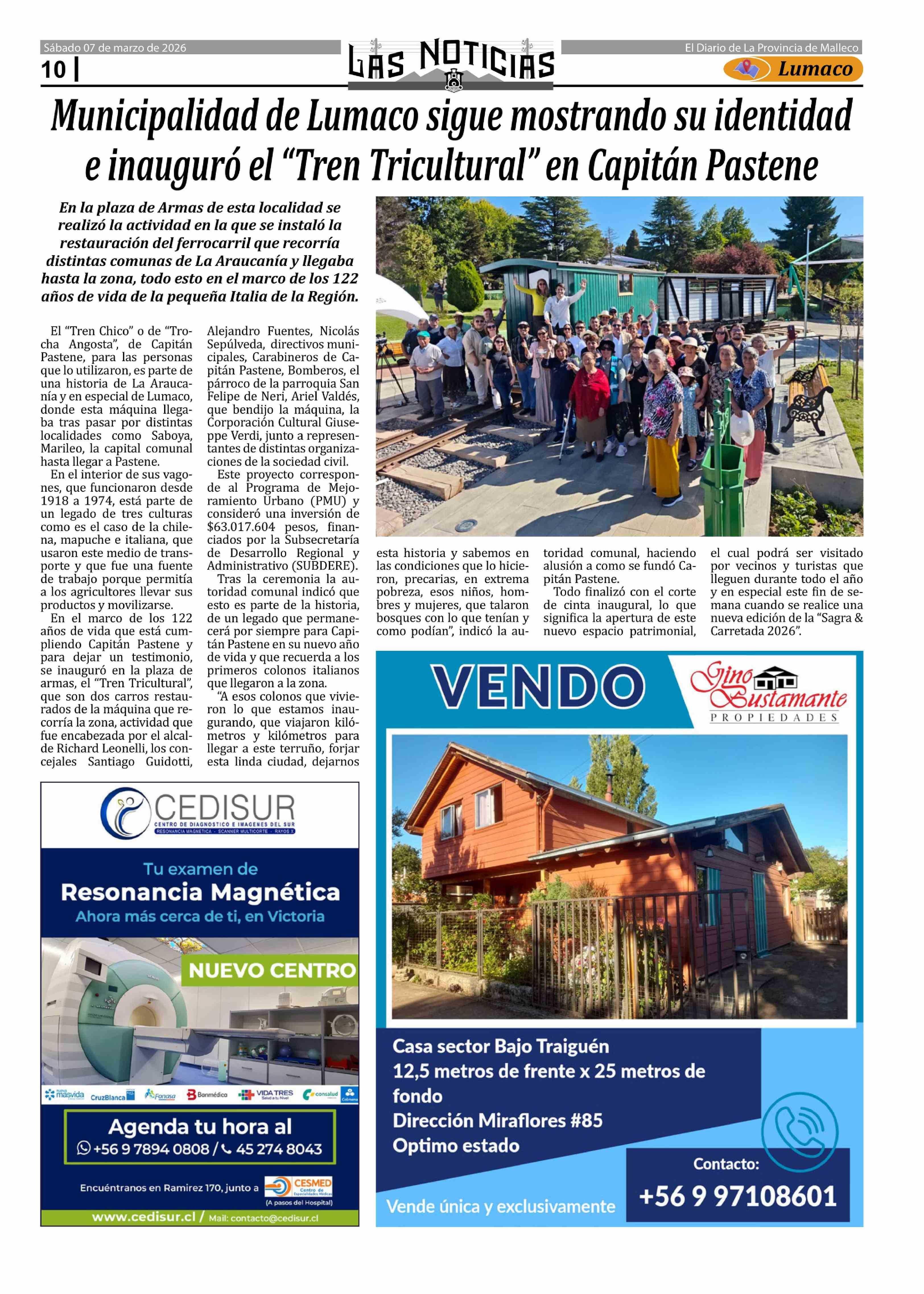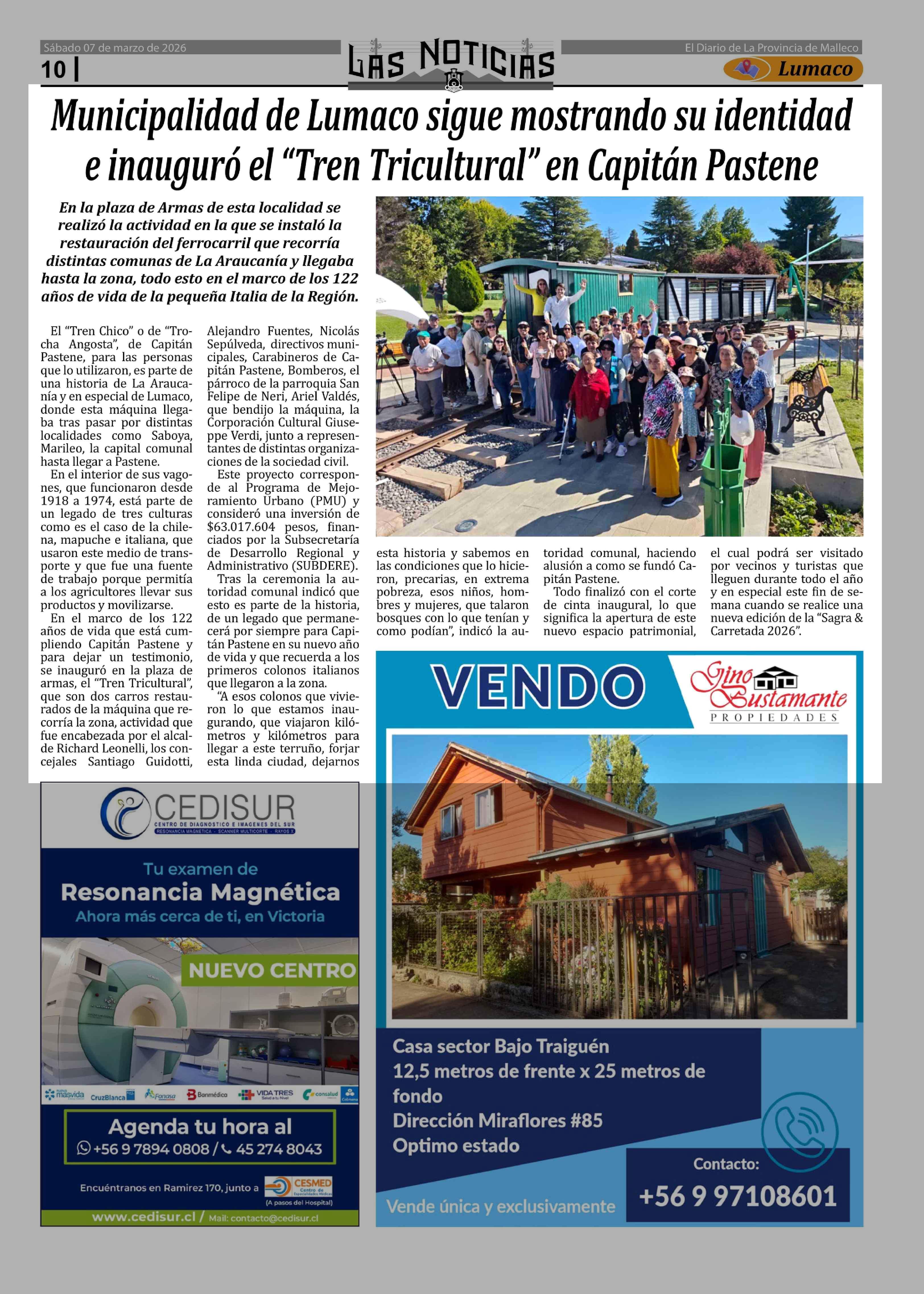 Título: Municipalidad de Lumaco sigue mostrando su identidad e inauguró el "Tren Tricultural" en Capitán Pastene