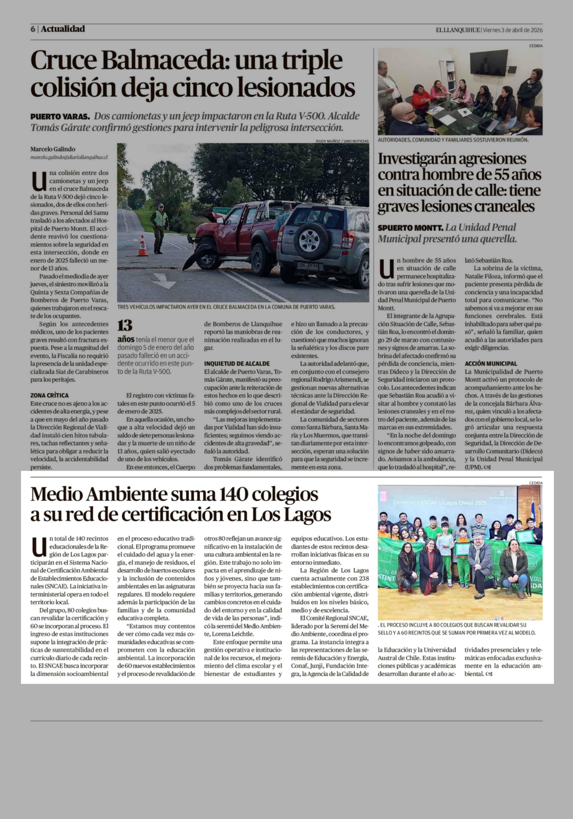 | Fecha: | 03-04-2026 | Sector: | Noticia general | Región: | Región de Los Lagos |