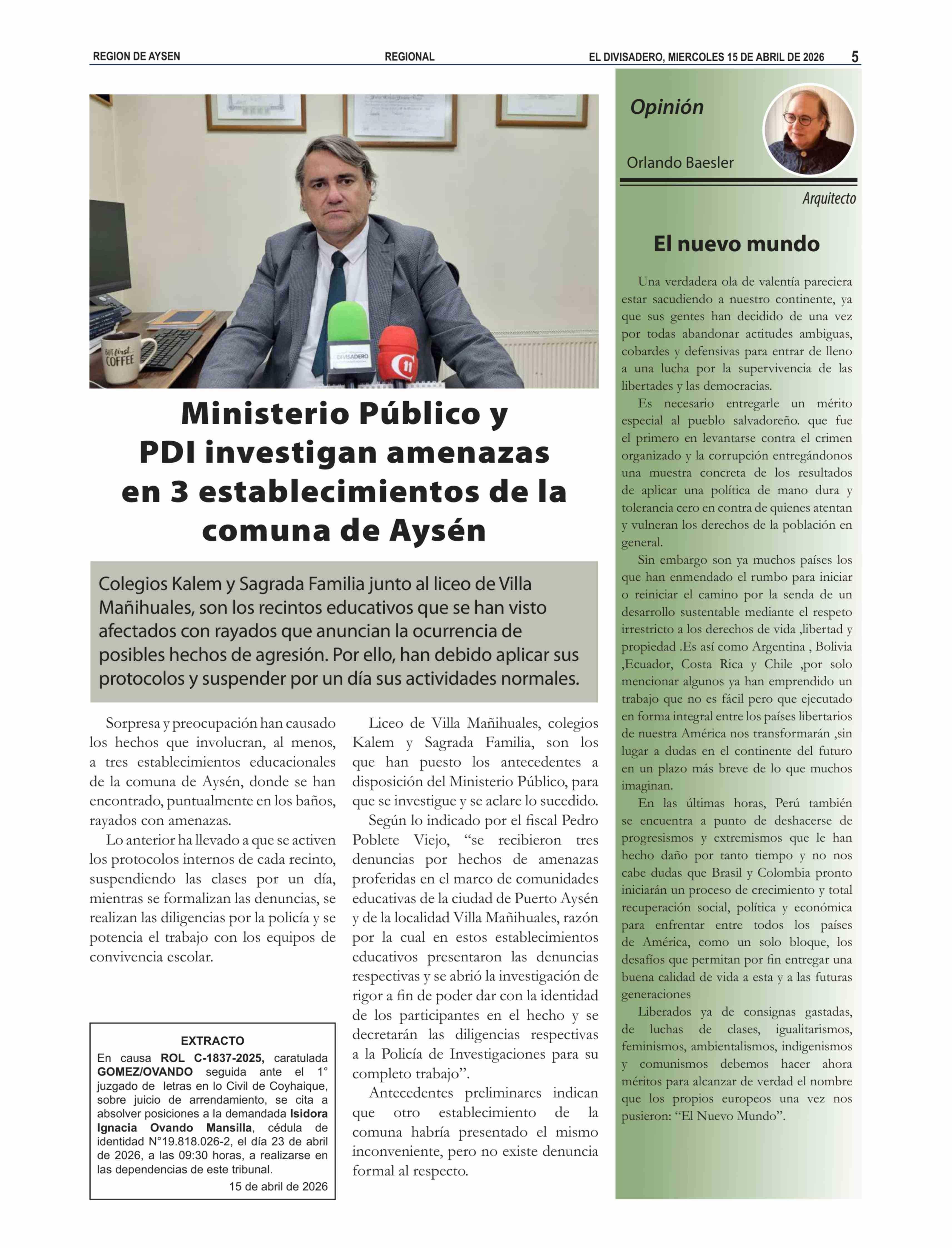 | Fecha: | 15-04-2026 | Sector: | Columnas de Opinión | Región: | Región Aysén del General Carlos Ibáñez del Campo |