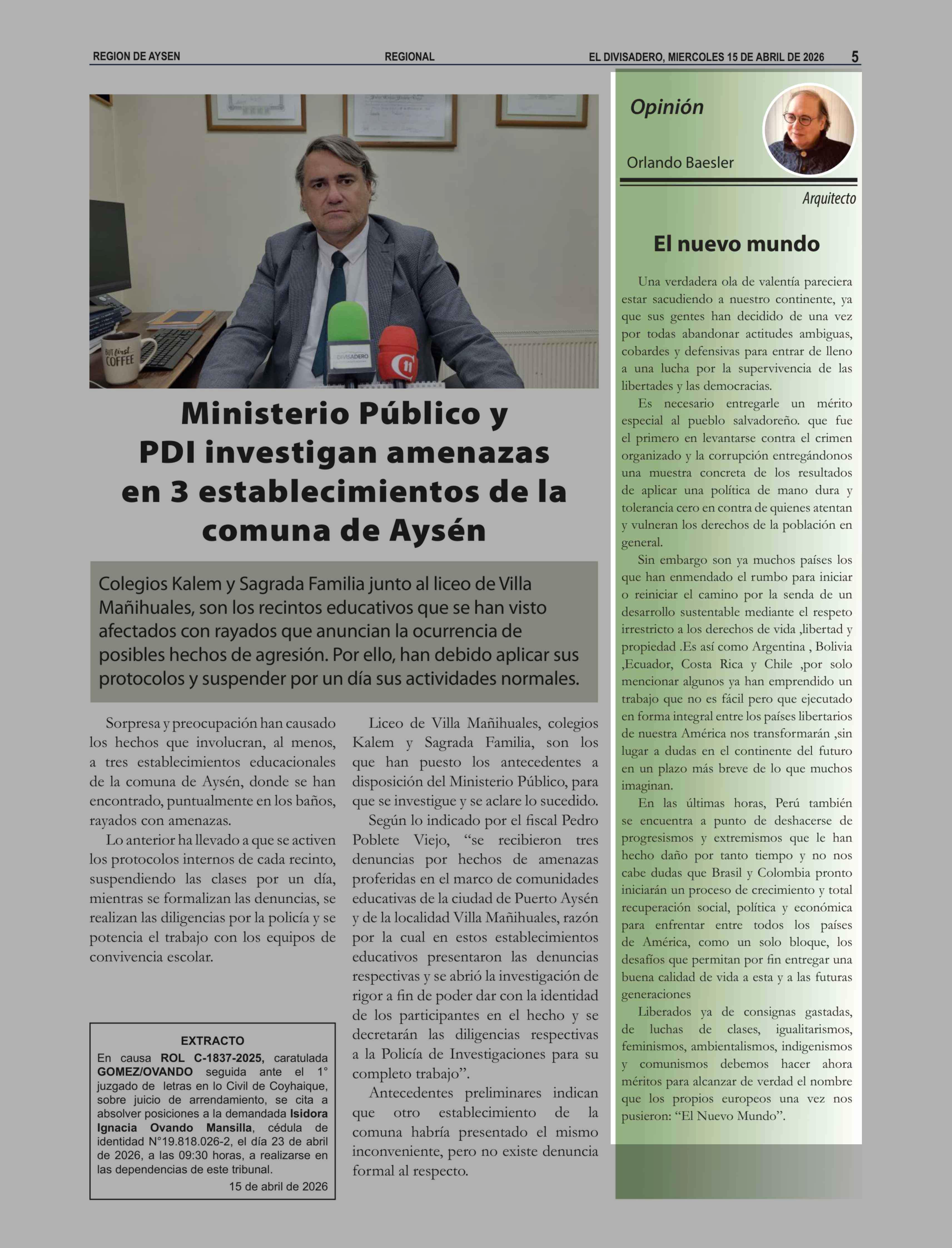 Columnas de Opinión: El nuevo mundo 15-04-2026 El Divisadero |