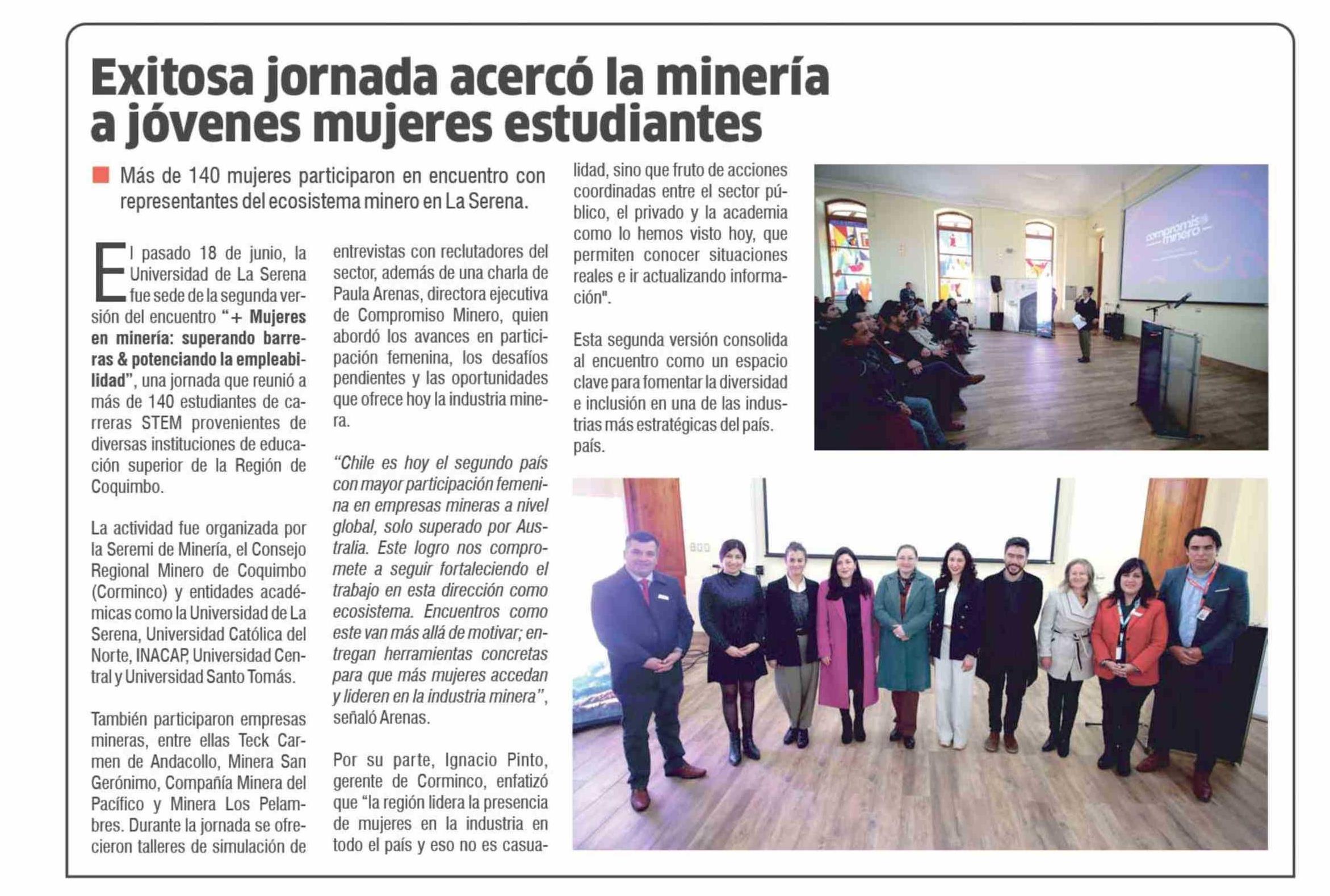 Exitosa jornada acercó la minería ajóvenes mujeres estudiantes 25-06-2025 Diario la Región |