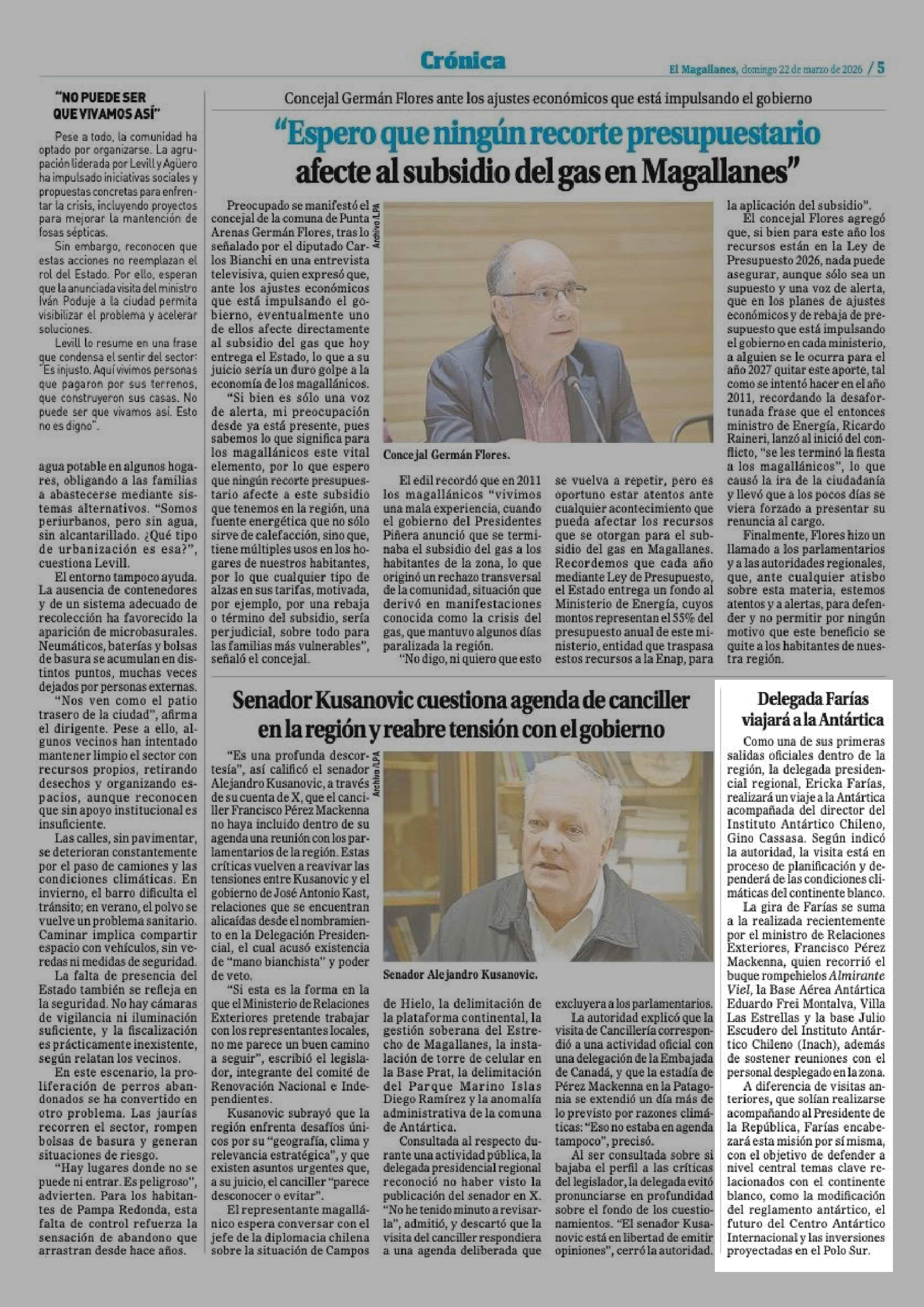 | Fecha: | 22-03-2026 | Sector: | Noticia general | Región: | Región de Magallanes y de la Antártica Chilena |