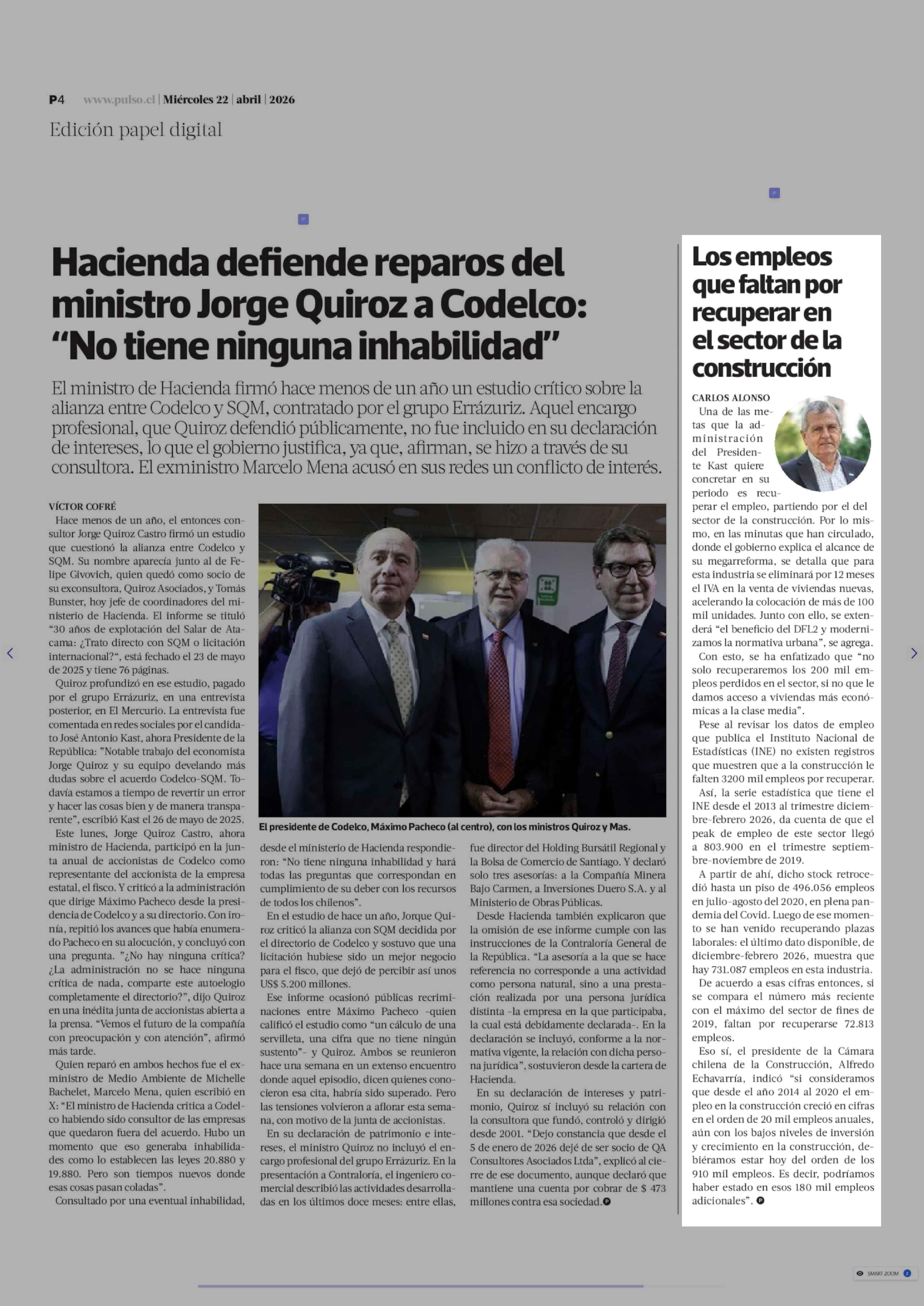Los empleos que faltan por recuperar en el sector de la construcción 22-04-2026 La Tercera |