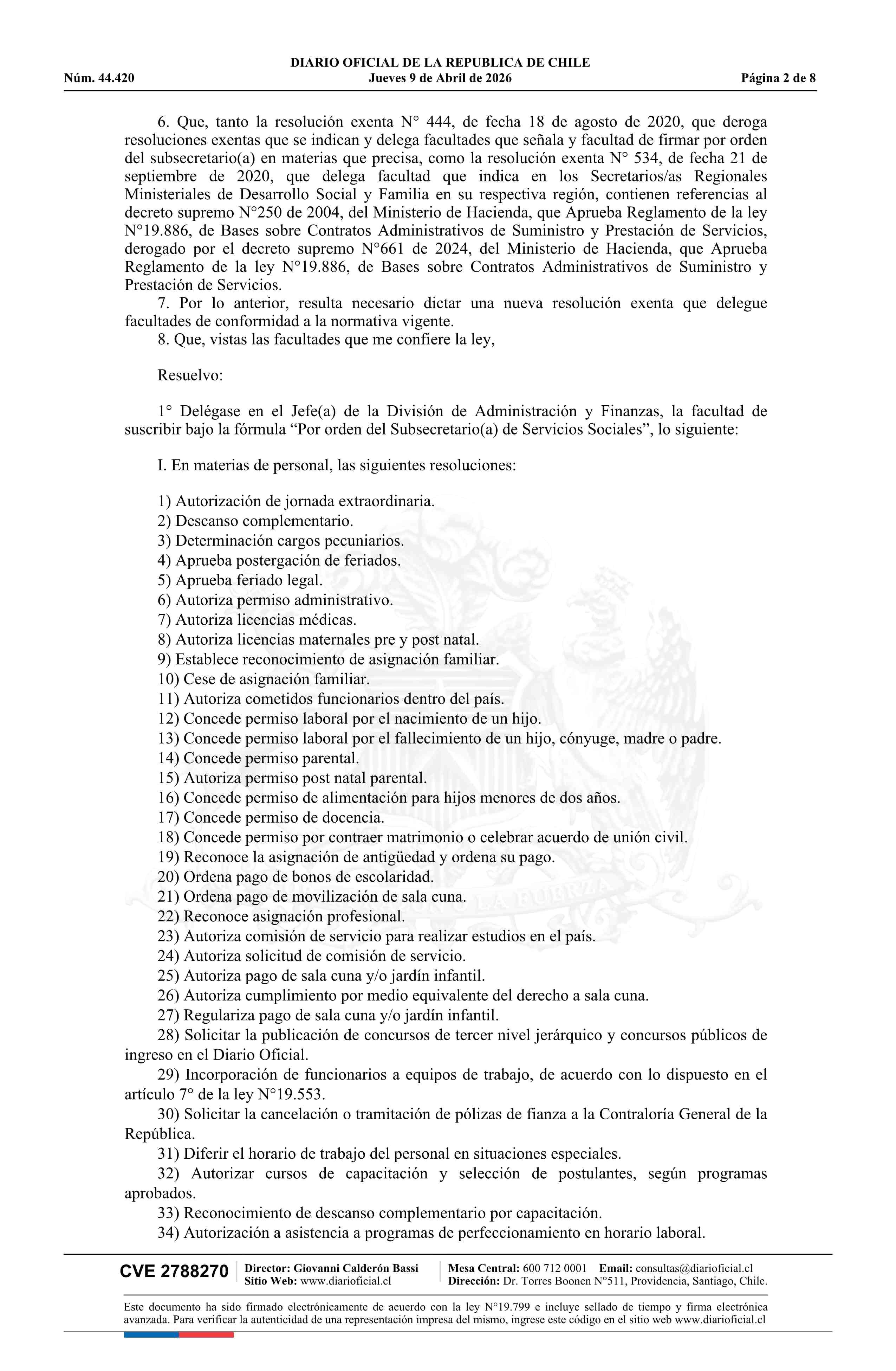 Título: Resolución exenta número 124, de 2026.- Delega facultades que señala y facultad de firmar por orden del Subsecretario(a) en materia que precisa y deroga resoluciones exentas que se indican