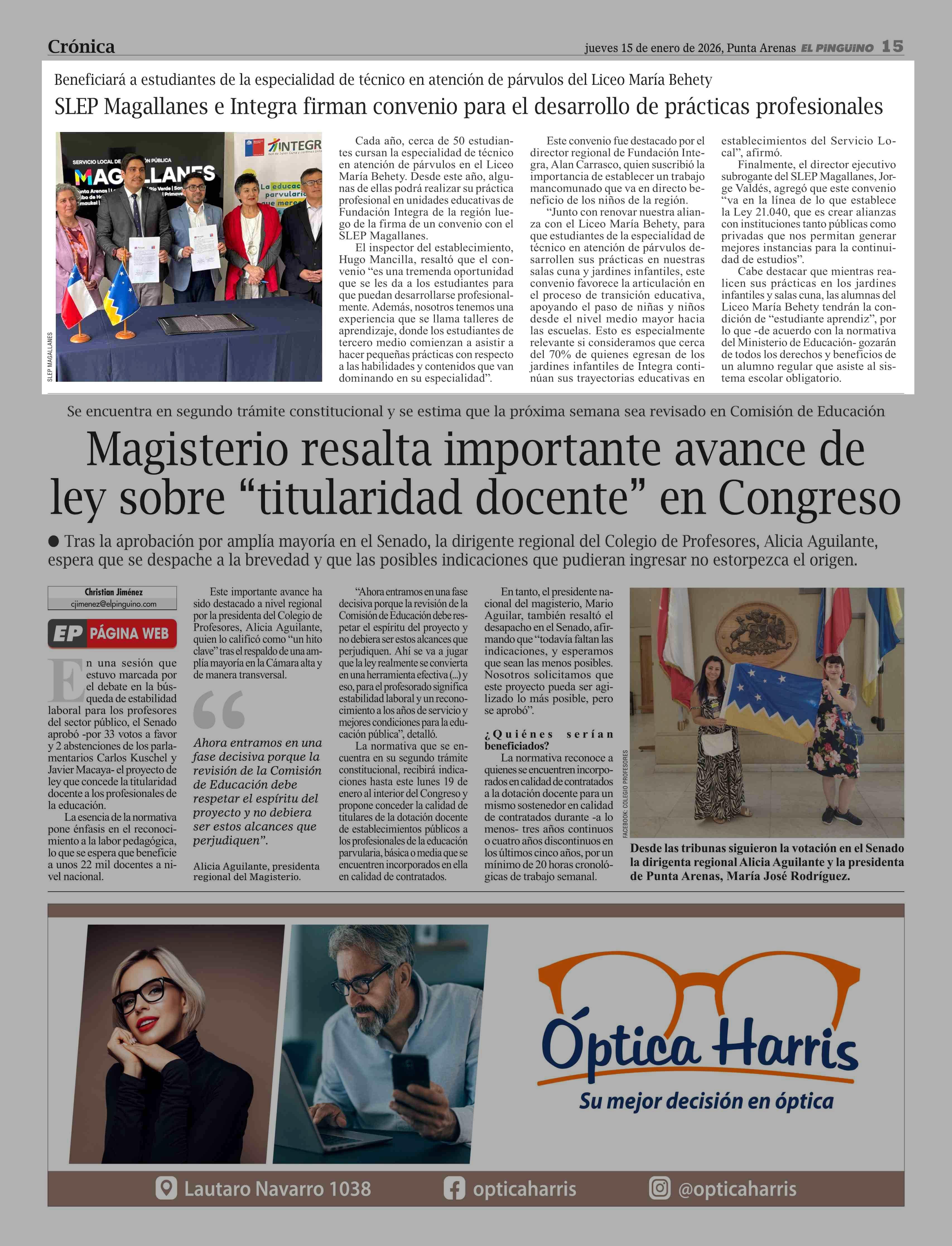 SLEP Magallanes e Integra firman convenio para el desarrollo de prácticas profesionales 15-01-2026 El Pingüino |