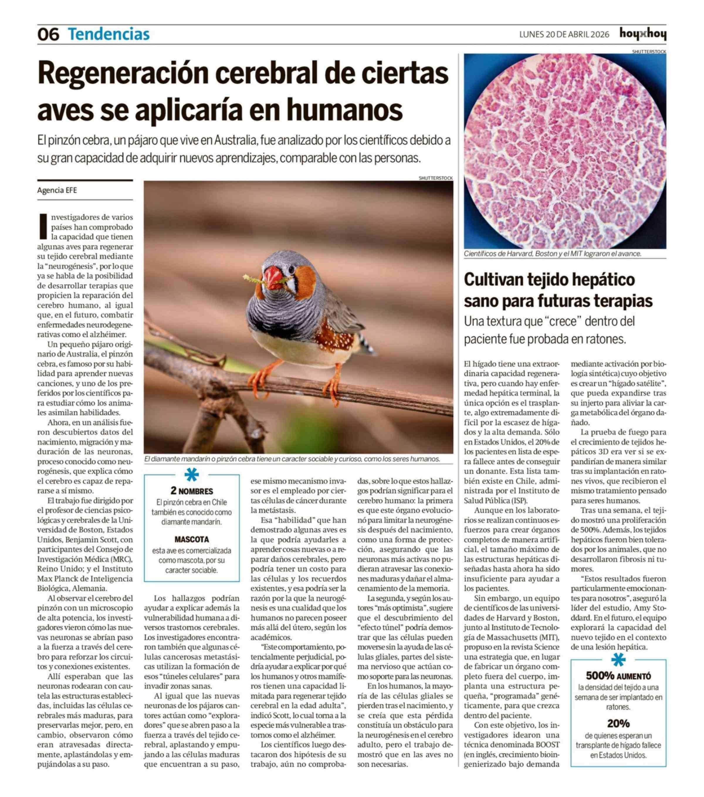 Título: Regeneración cerebral de ciertas aves se aplicaría en humanos