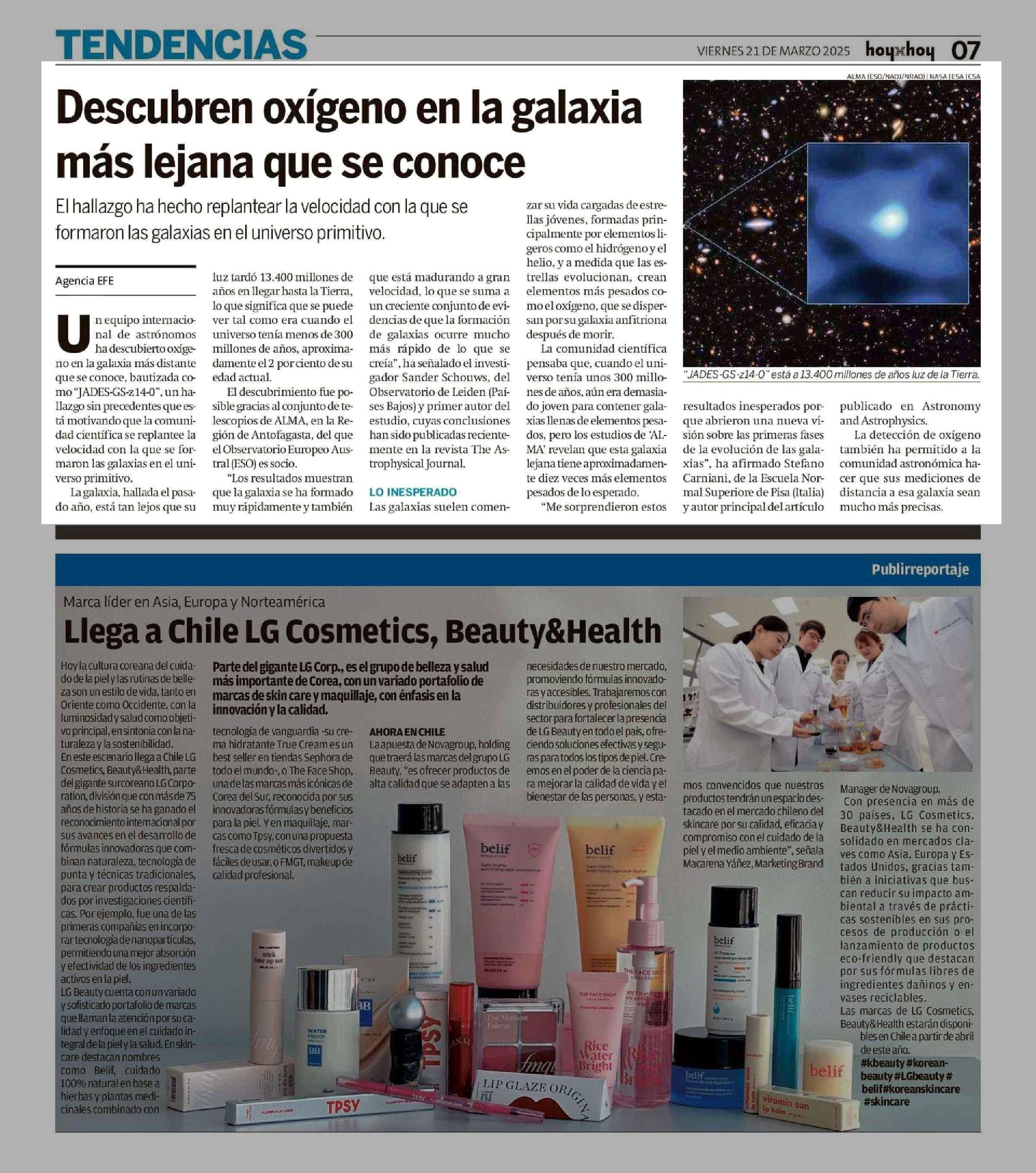 Descubren oxígeno en la galaxia más lejana que se conoce 21-03-2025 Hoy x Hoy Concepción |