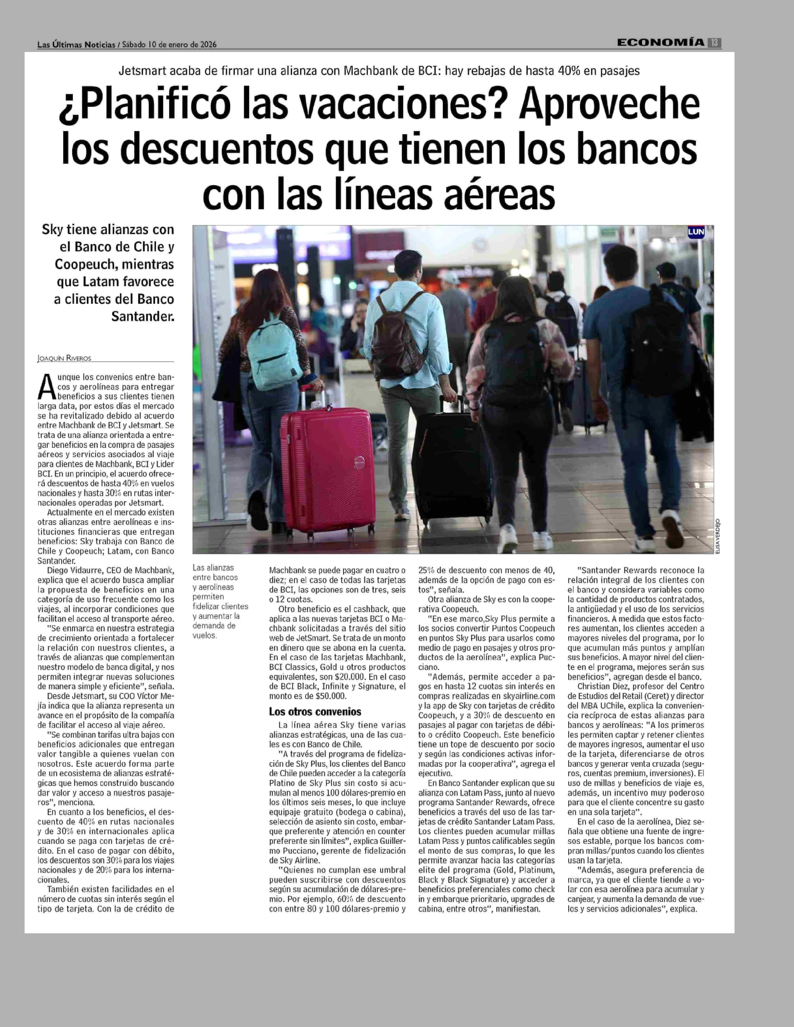 ¿Planificó las vacaciones? Aproveche los descuentos que tienen los bancos con las líneas aéreas 10-01-2026 Las Últimas Noticias |