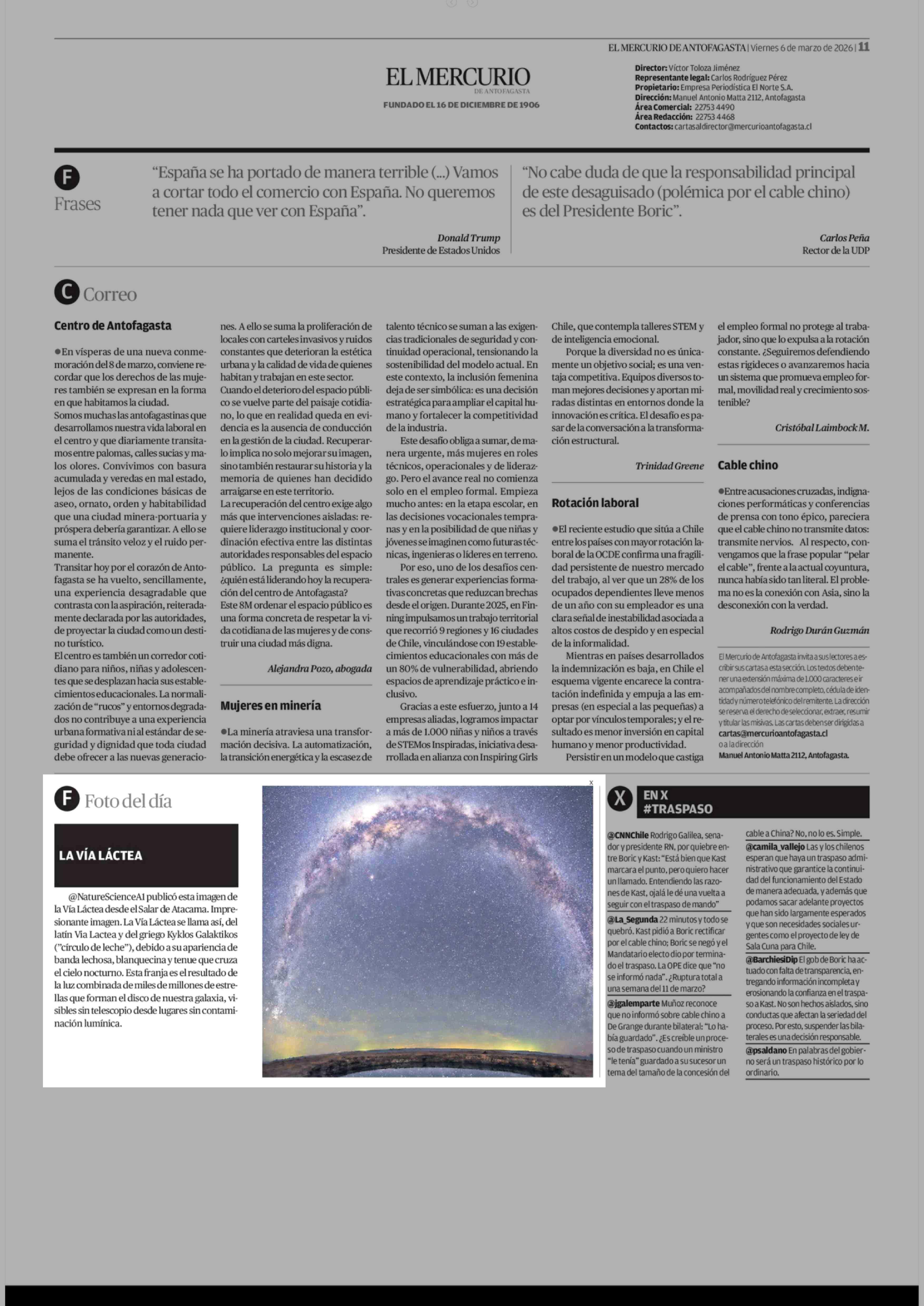 F Foto del día 06-03-2026 El Mercurio de Antofagasta |