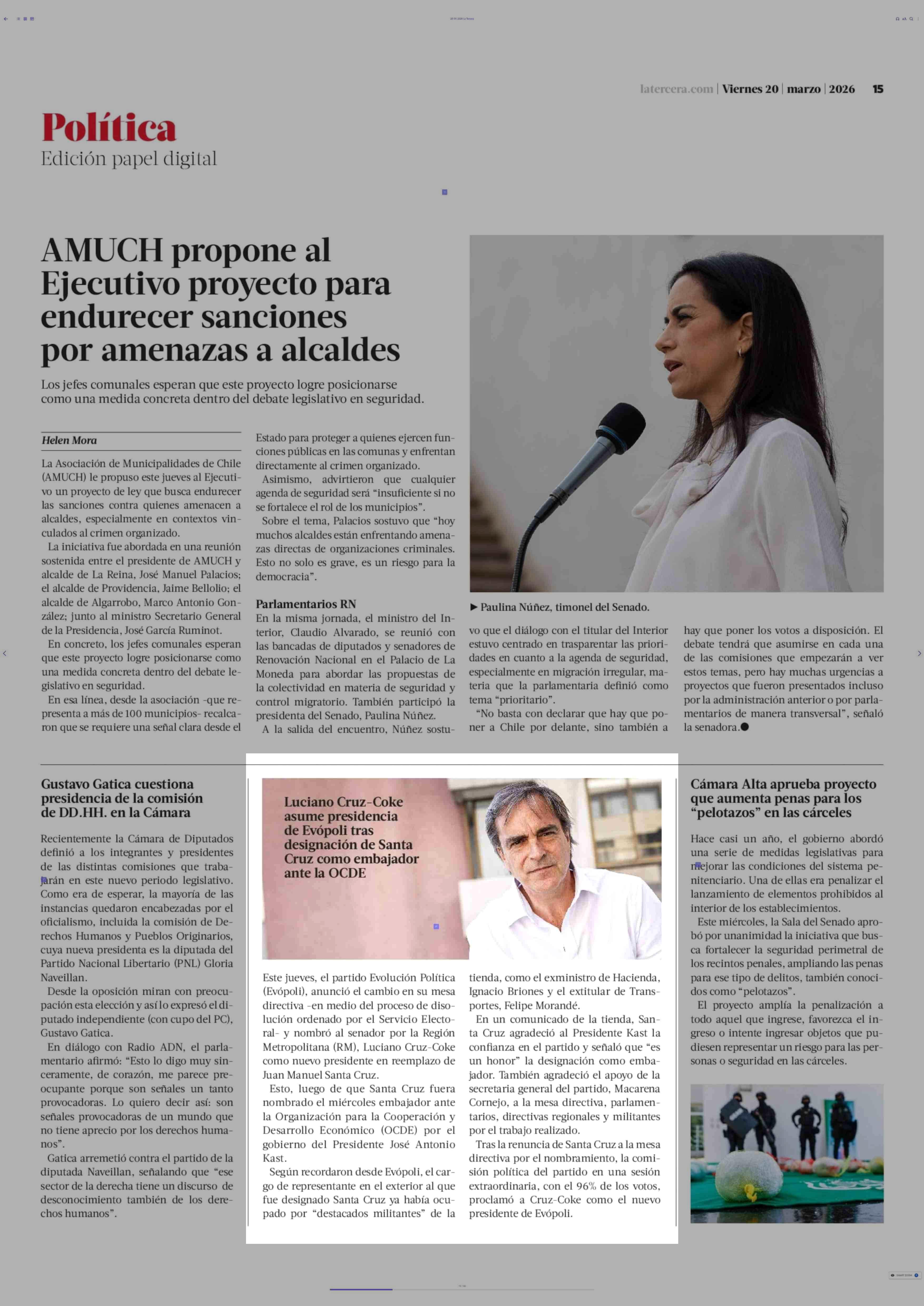 Luciano Cruz-Coke asume presidencia de Evópoli tras designación de Santa Cruz como embajador ante la OCDE 20-03-2026 La Tercera |