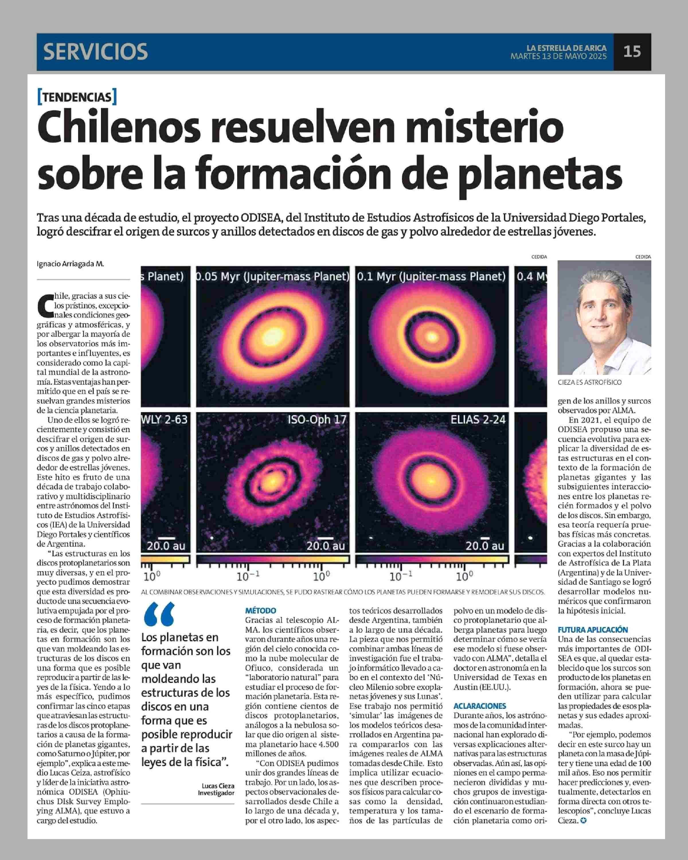 Chilenos resuelven misterio sobre la formación de planetas 13-05-2025 La Estrella de Arica |