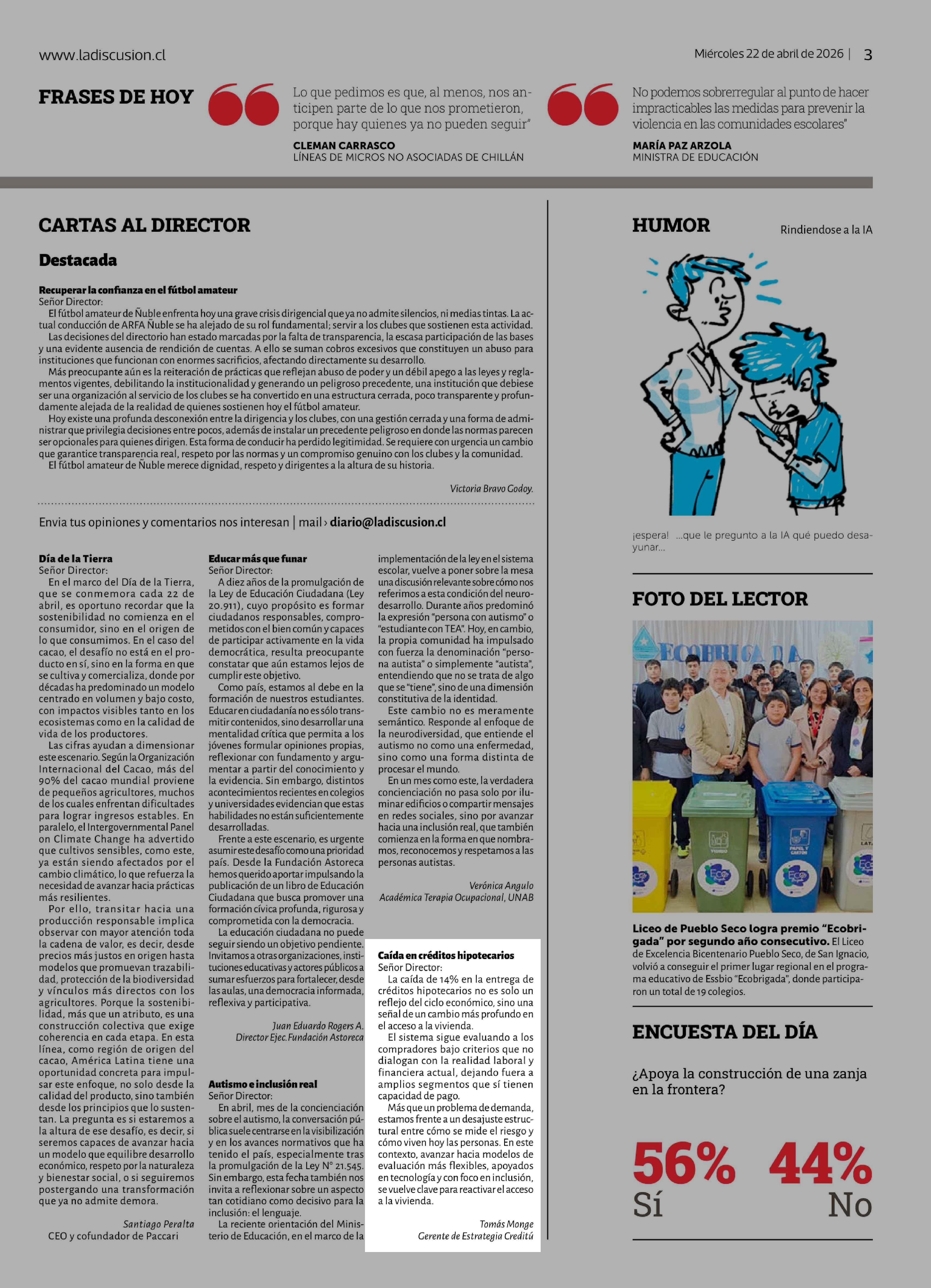 Cartas: Caída en créditos hipotecarios 22-04-2026 La Discusión |