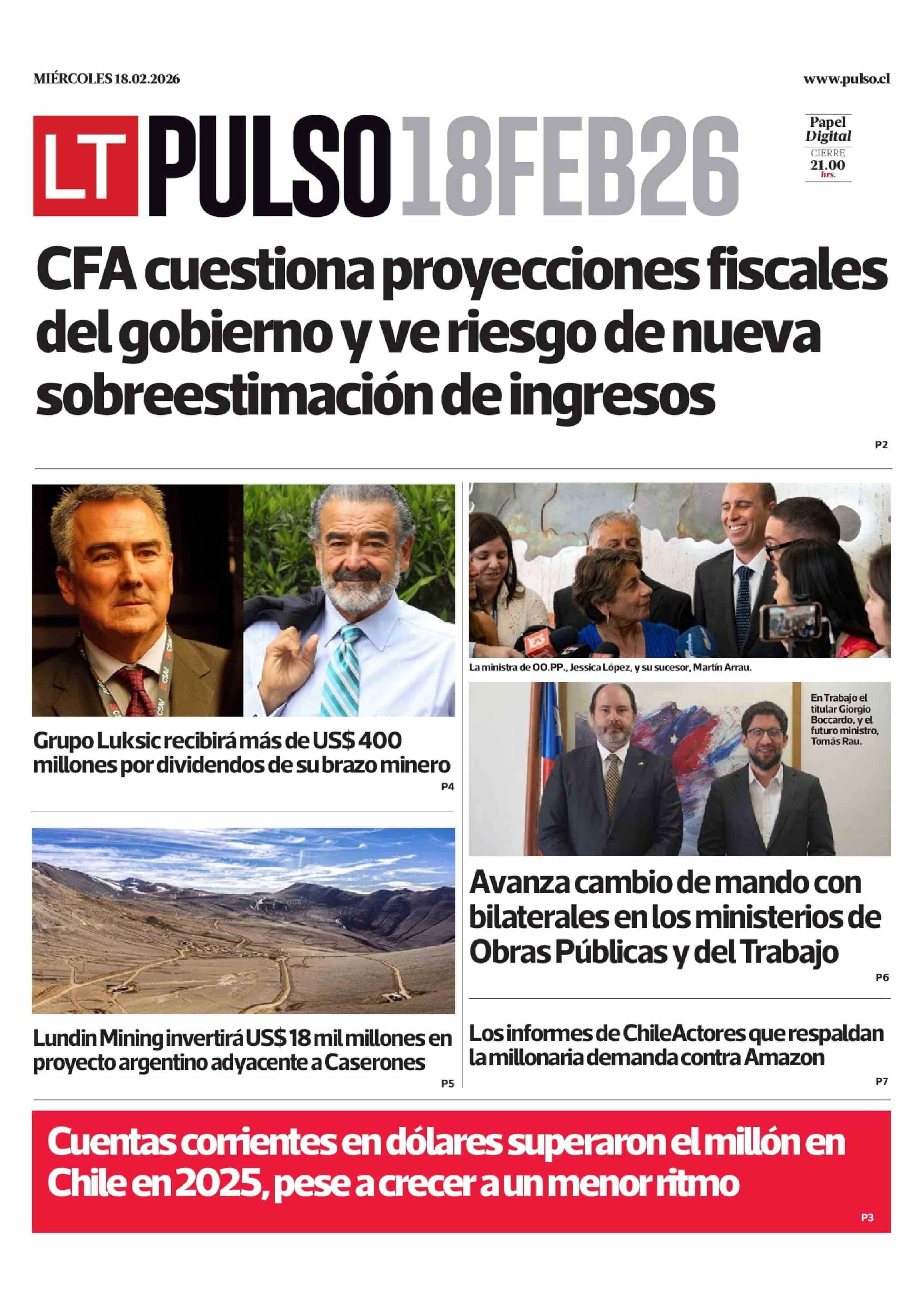 PORTADA LA TERCERA (PULSO) CHILE 18-02-2026 La Tercera |