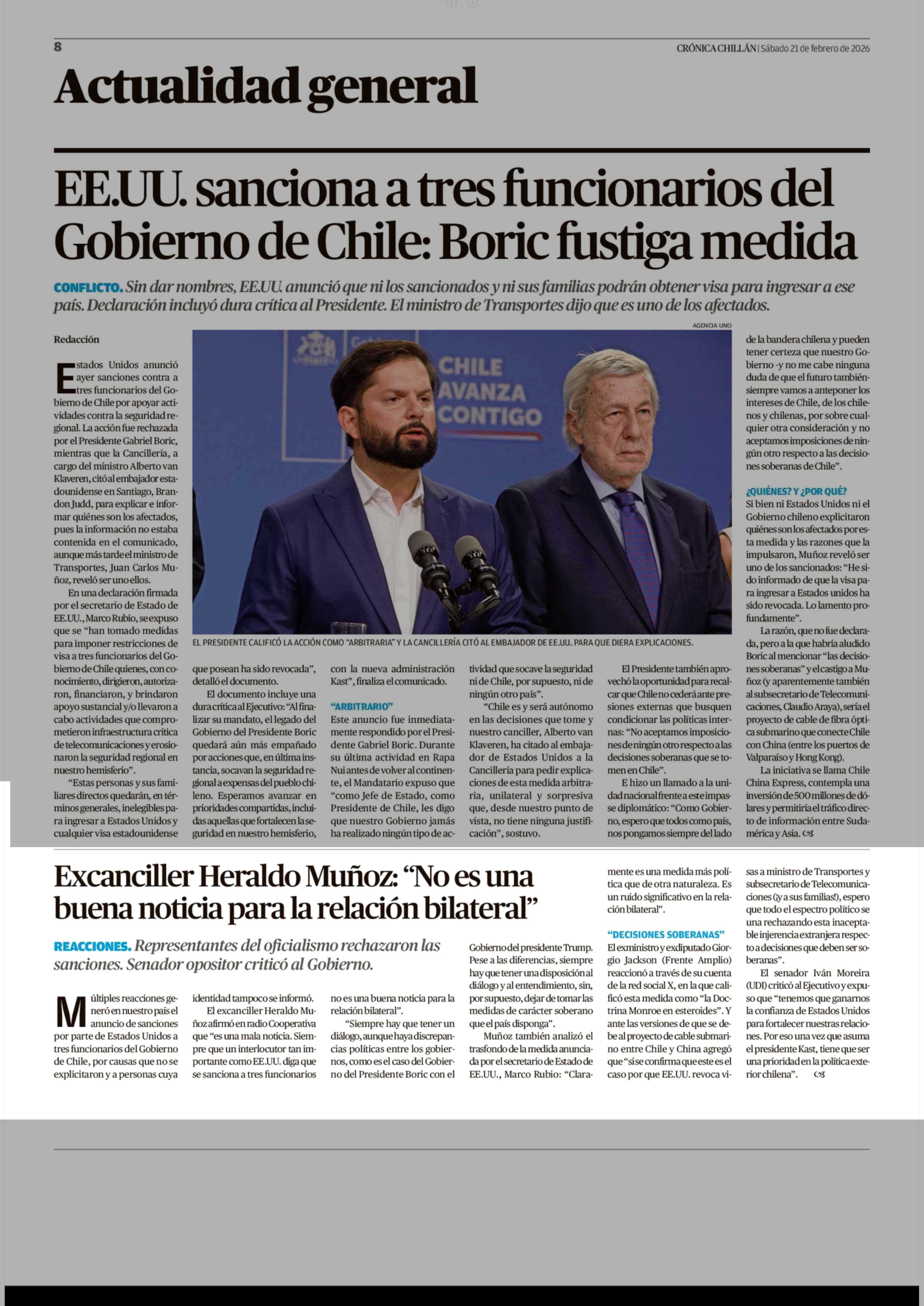 Fecha: 21-02-2026 Sector: Noticia general Región: Región del Ñuble
