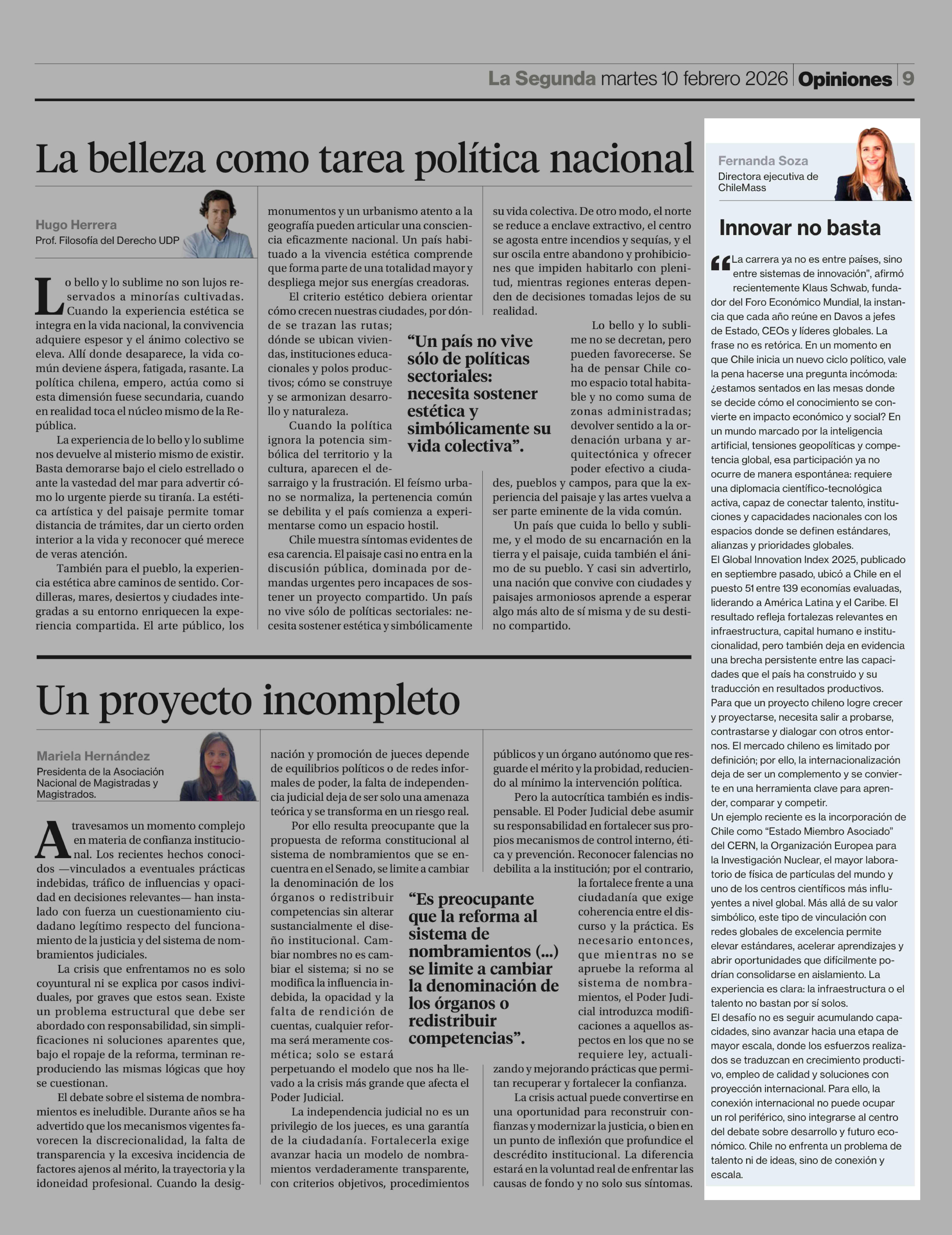 Columnas de Opinión: Innovar no basta 10-02-2026 La Segunda |