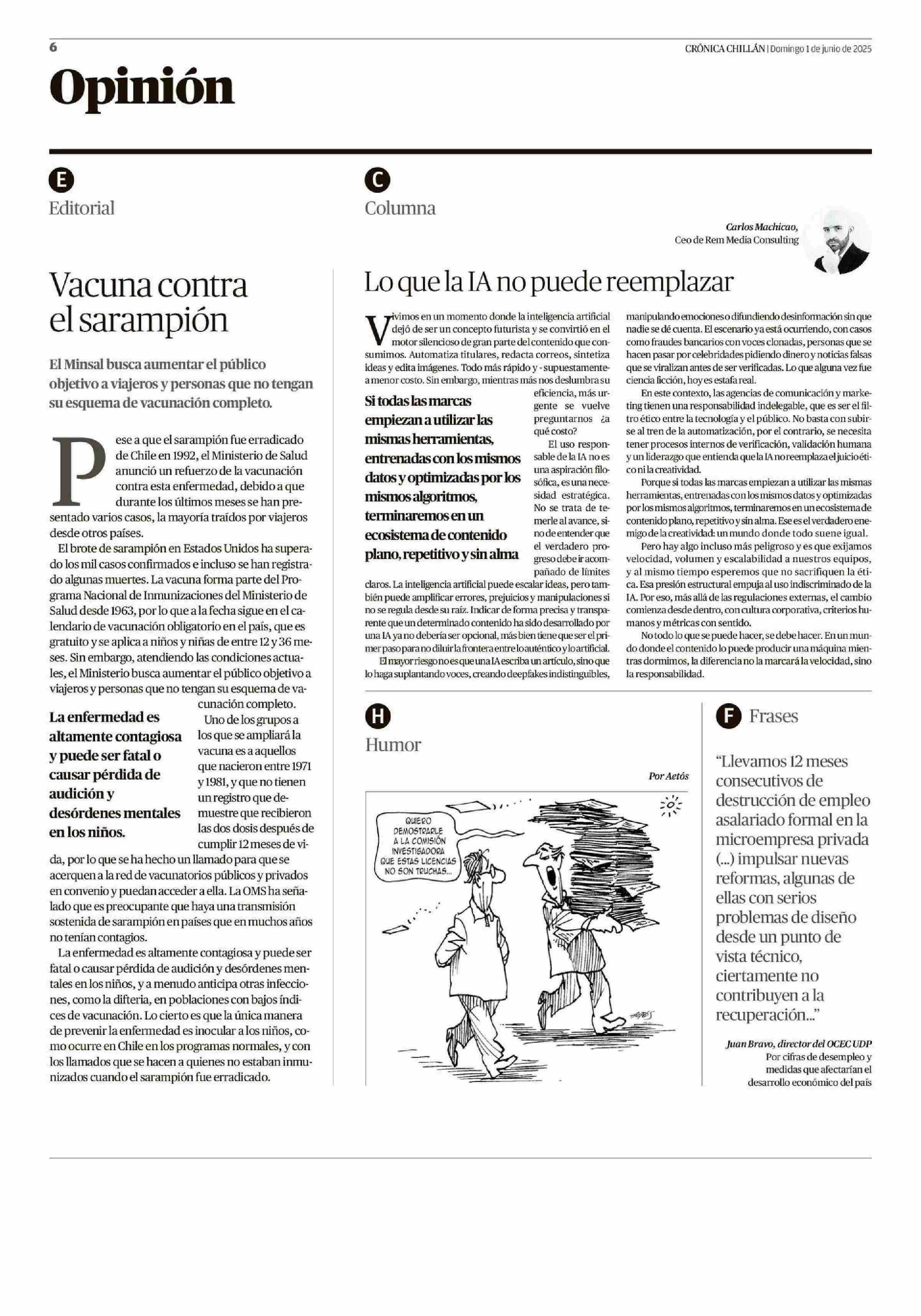 Editorial: Vacuna contra el sarampión 01-06-2025 Crónica de Chillán |