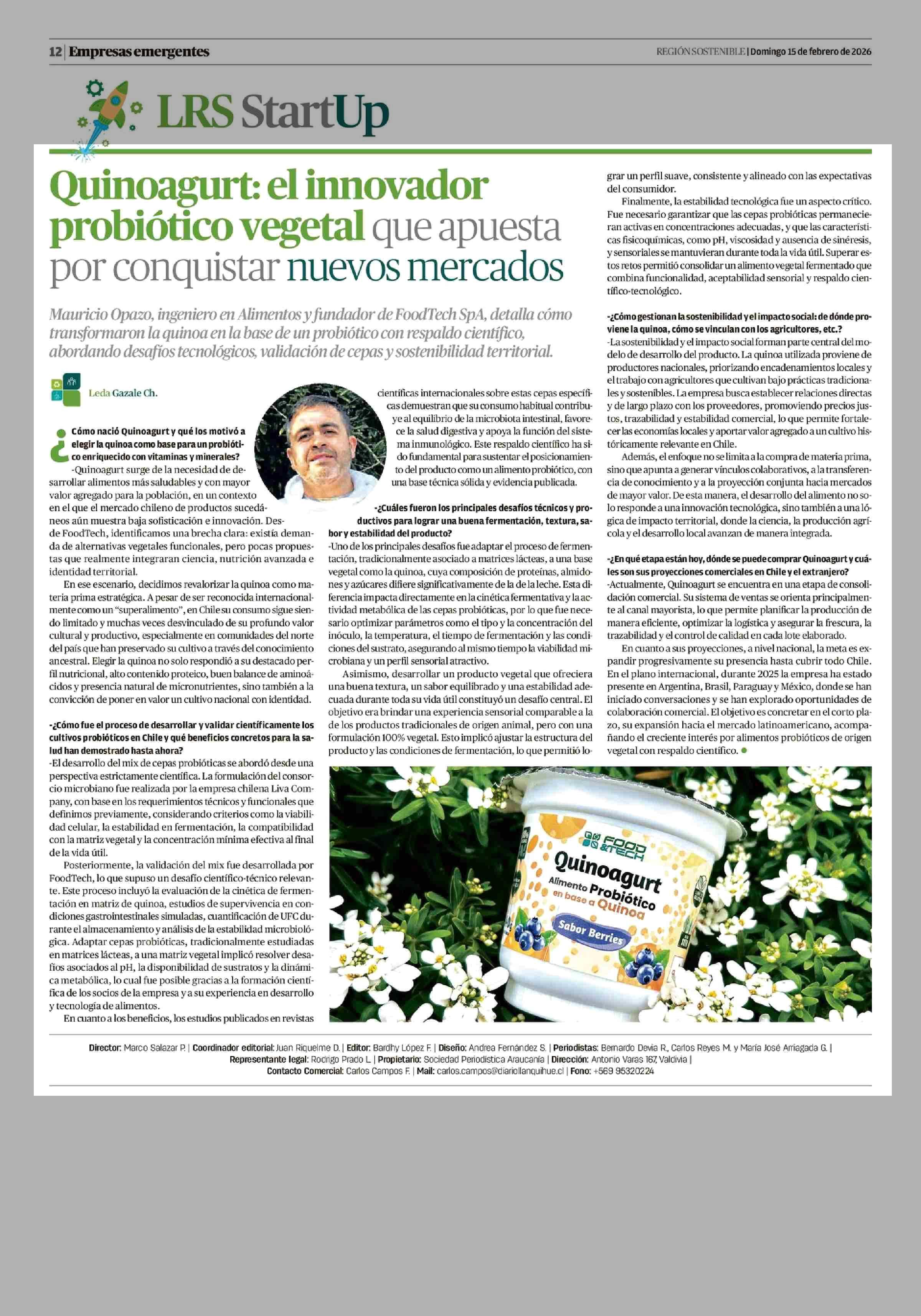 Título: Quinoagurt: el innovador probiótico vegetal que apuesta por conquistar nuevos mercados