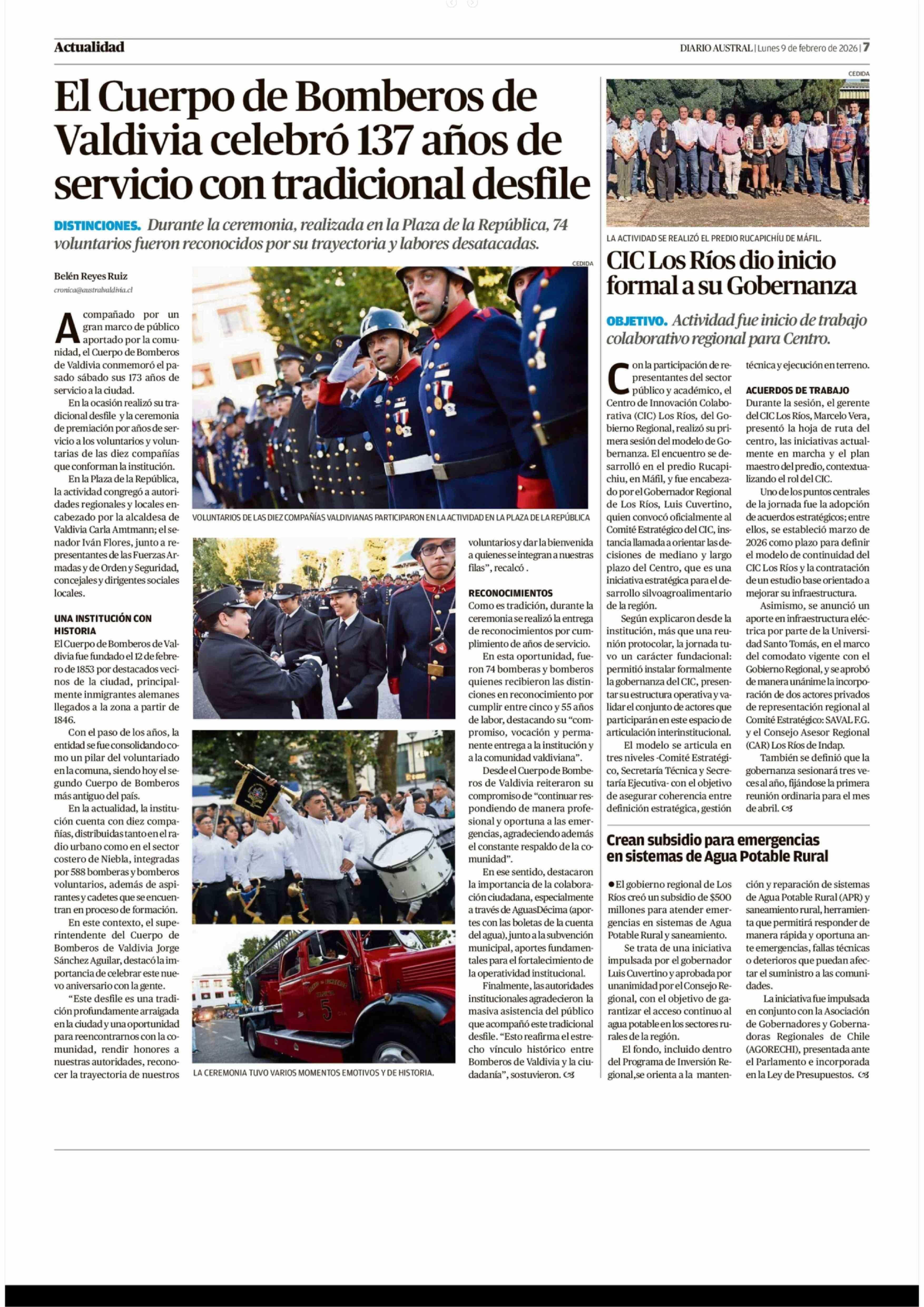 CIC Los Ríos dio inicio formal a su Gobernanza 09-02-2026 Diario Austral Región de Los Ríos |