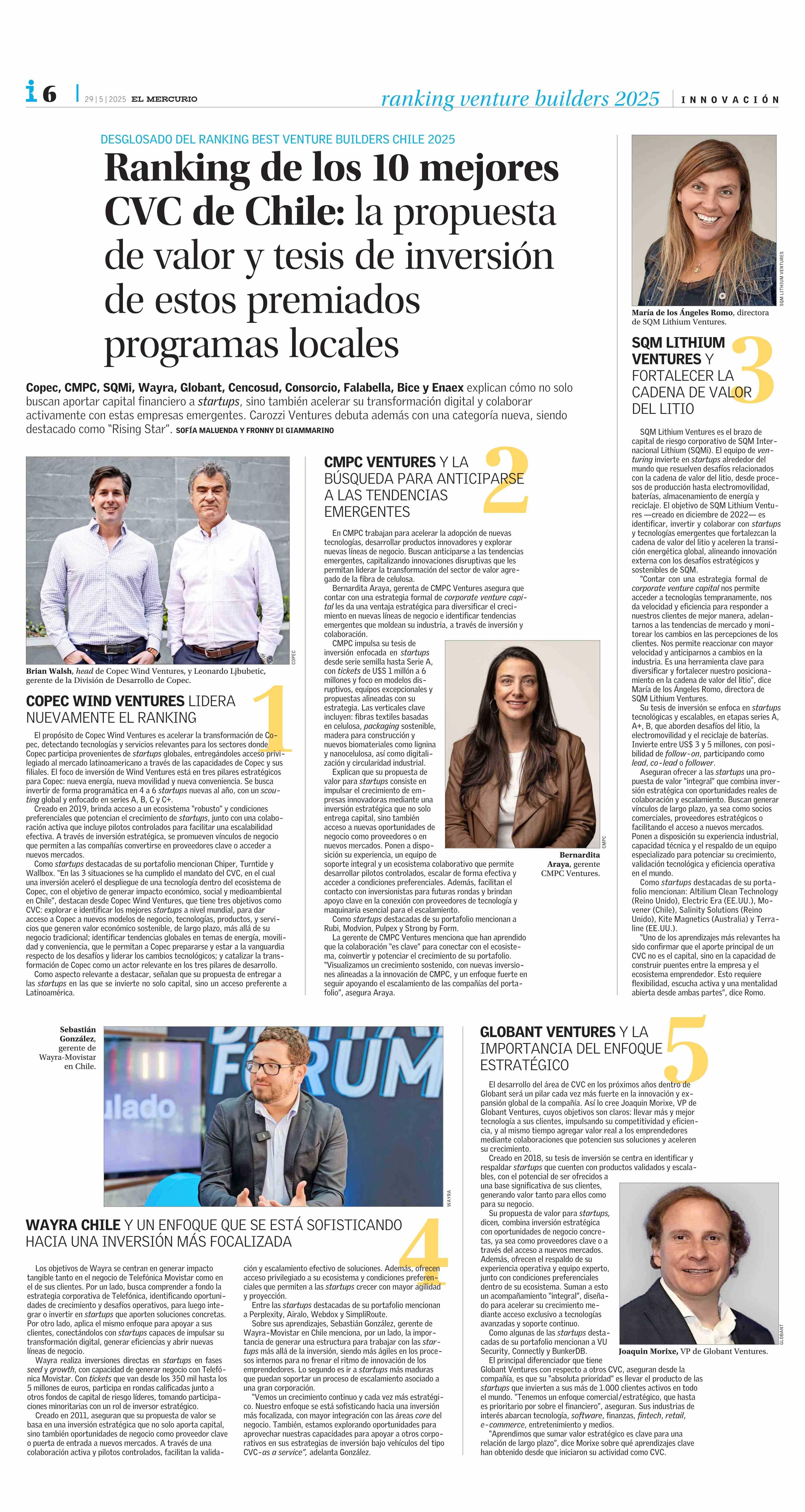 Ranking de los 10 mejores CVC de Chile: la propuesta de valor y tesis de inversión de estos premiados programas locales 29-05-2025 El Mercurio |