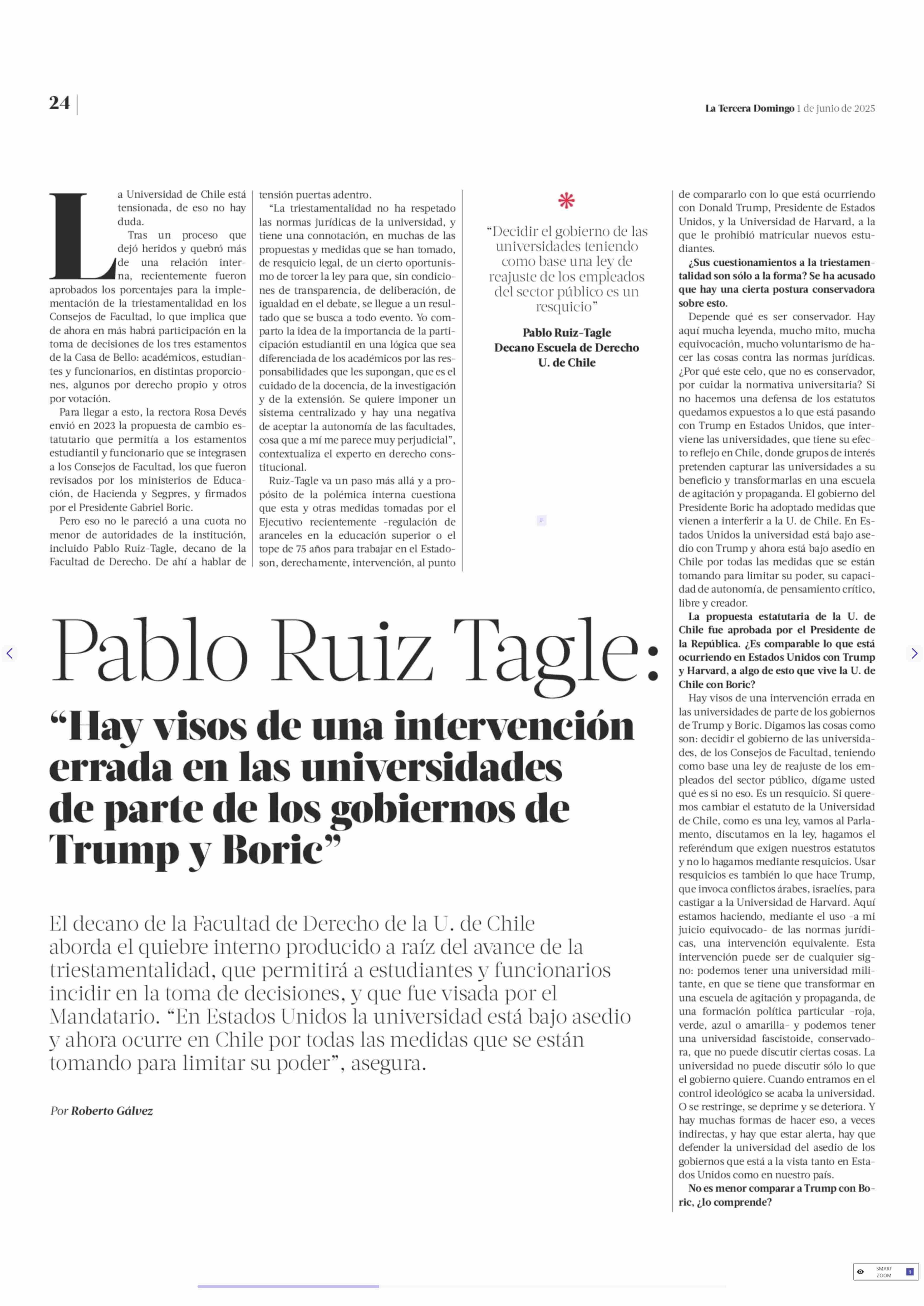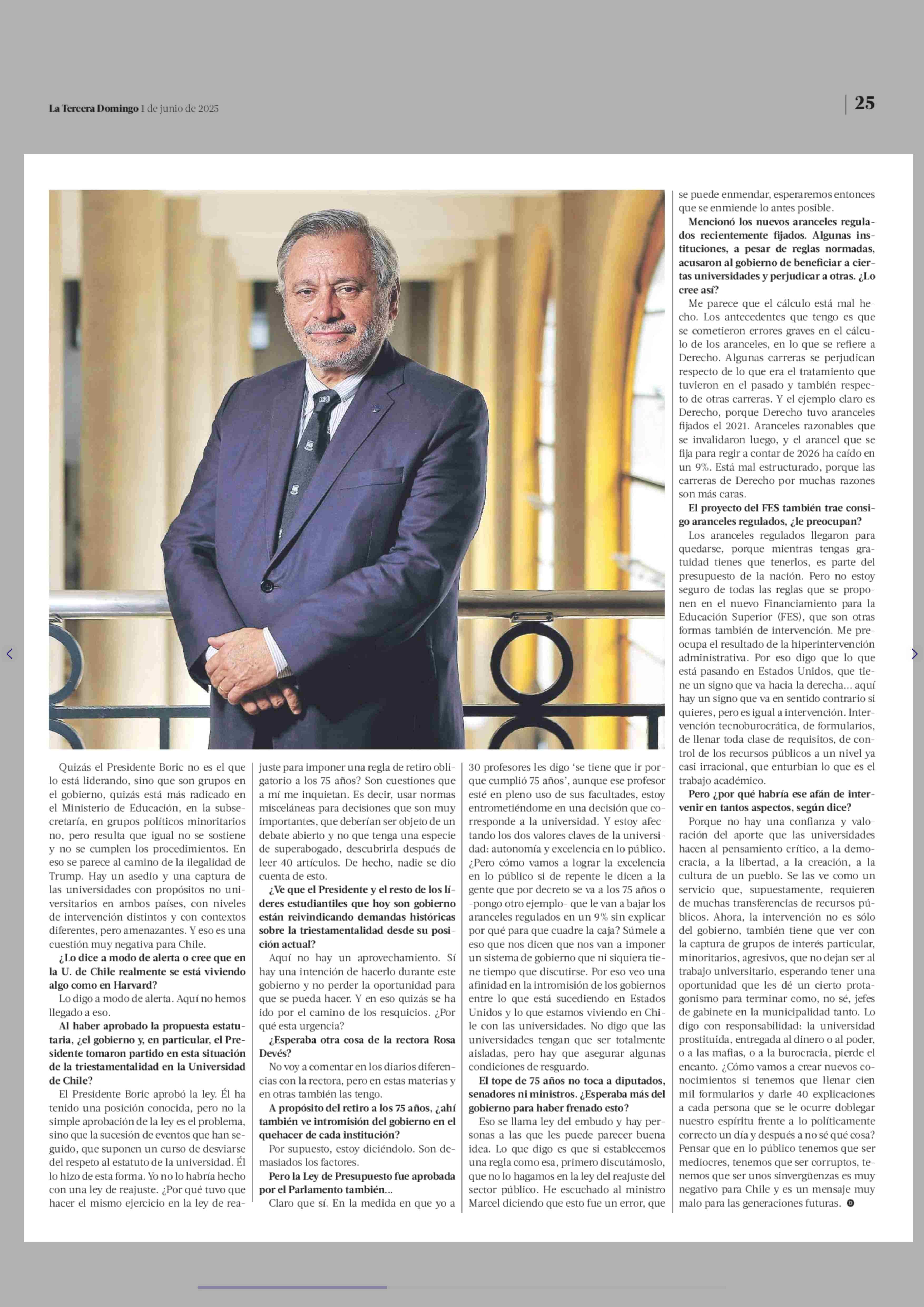 Título: Pablo Ruiz Tagle: “Hay visos de una intervención errada en las universidades de parte de los gobiernos de Trump y Boric”