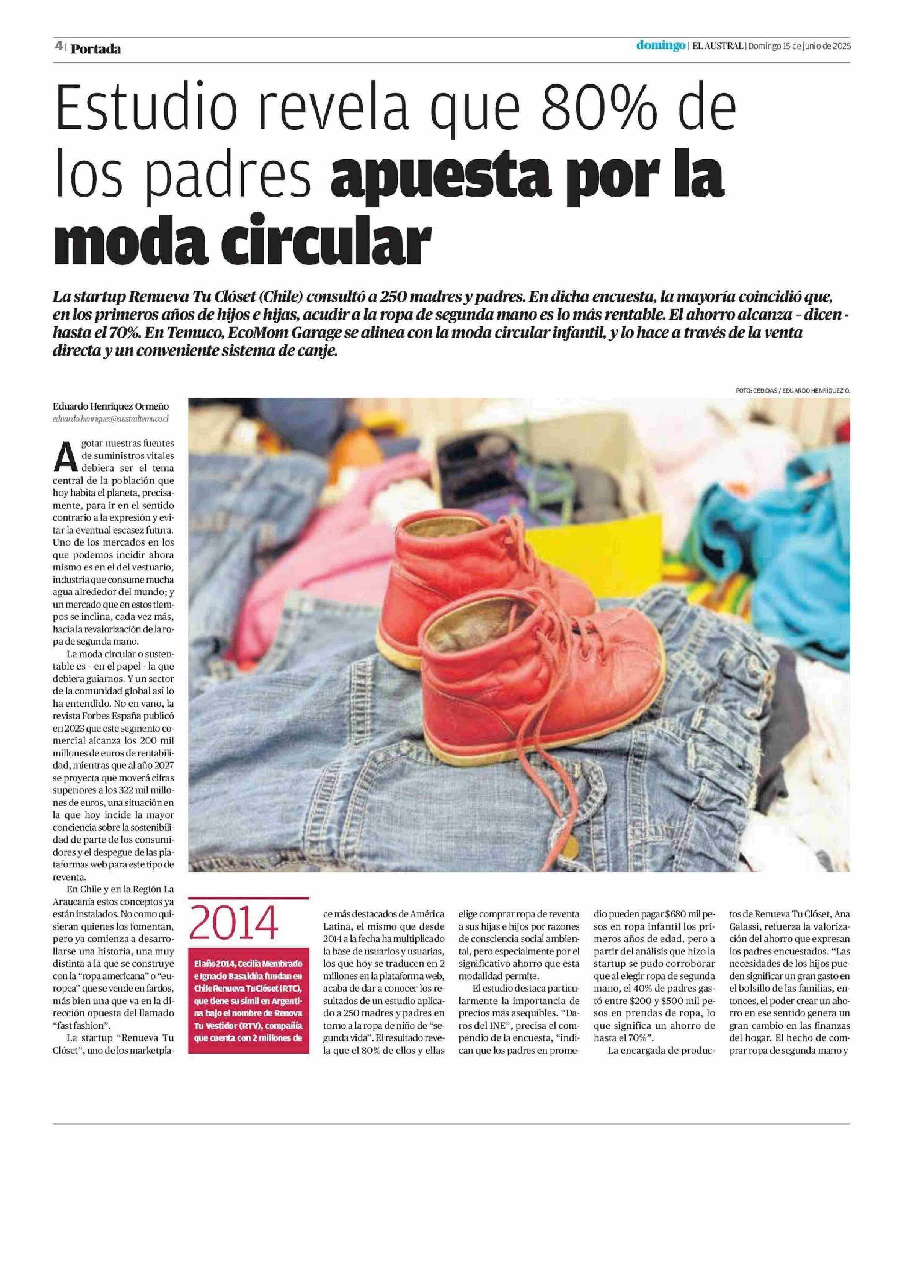Estudio revela que 80% de los padres apuesta por la moda circular 15-06-2025 El Austral de la Araucanía |