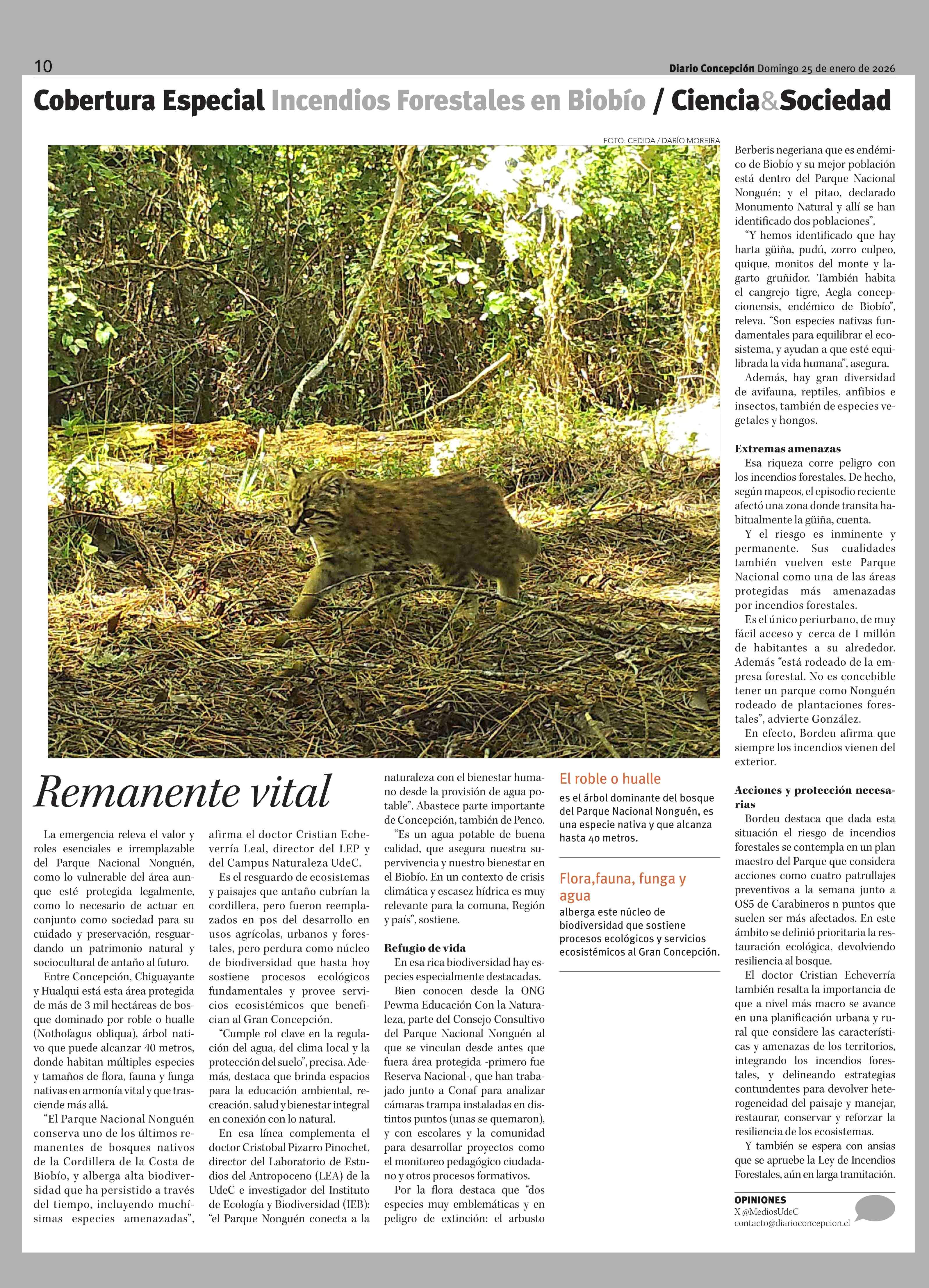 Incendio en Parque Nacional Nonguén: una década puede tardar la restauración del bosque dañado 25-01-2026 Diario Concepción |