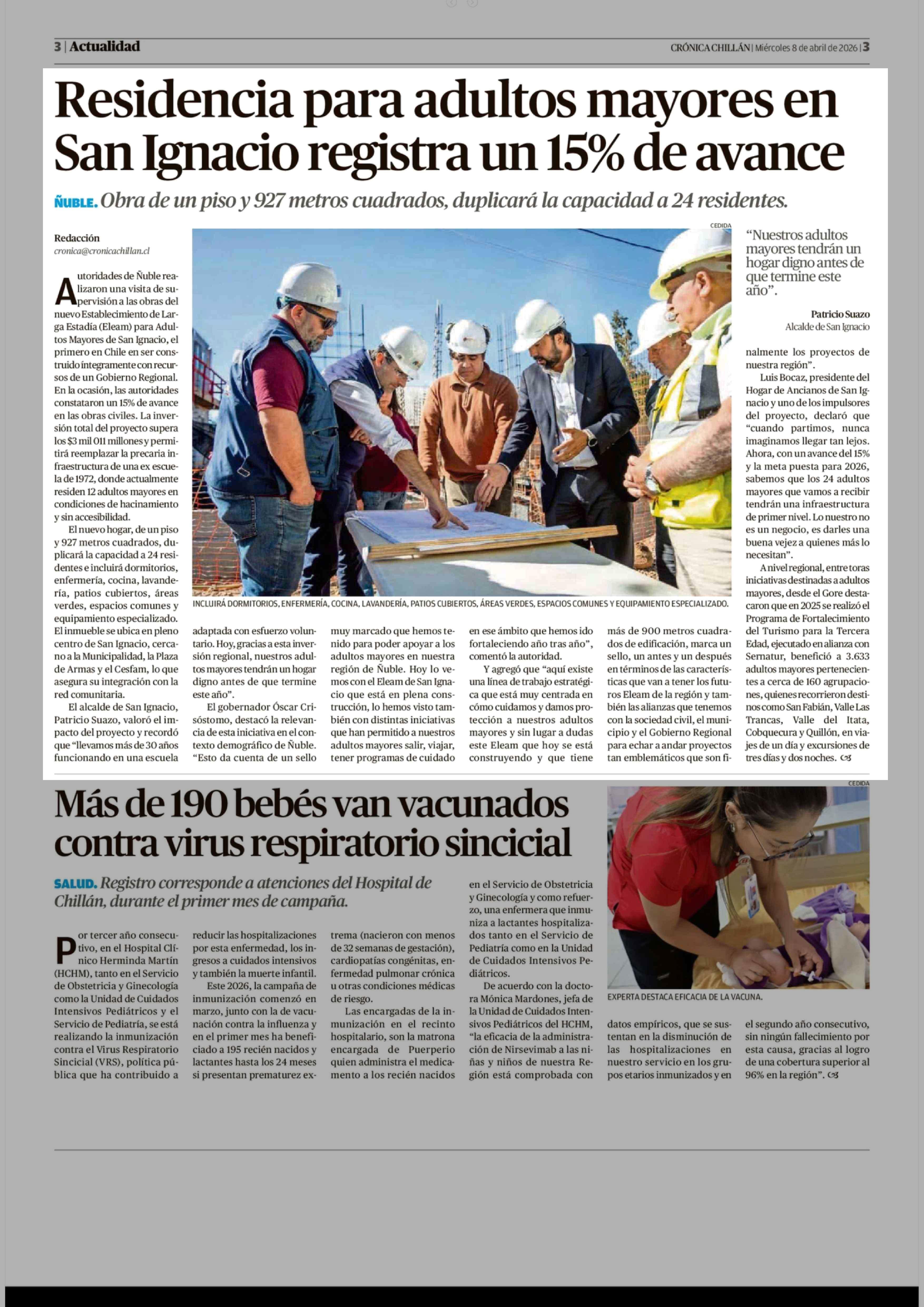 Residencia para adultos mayores en San Ignacio registra un 15% de avance 08-04-2026 Crónica de Chillán |
