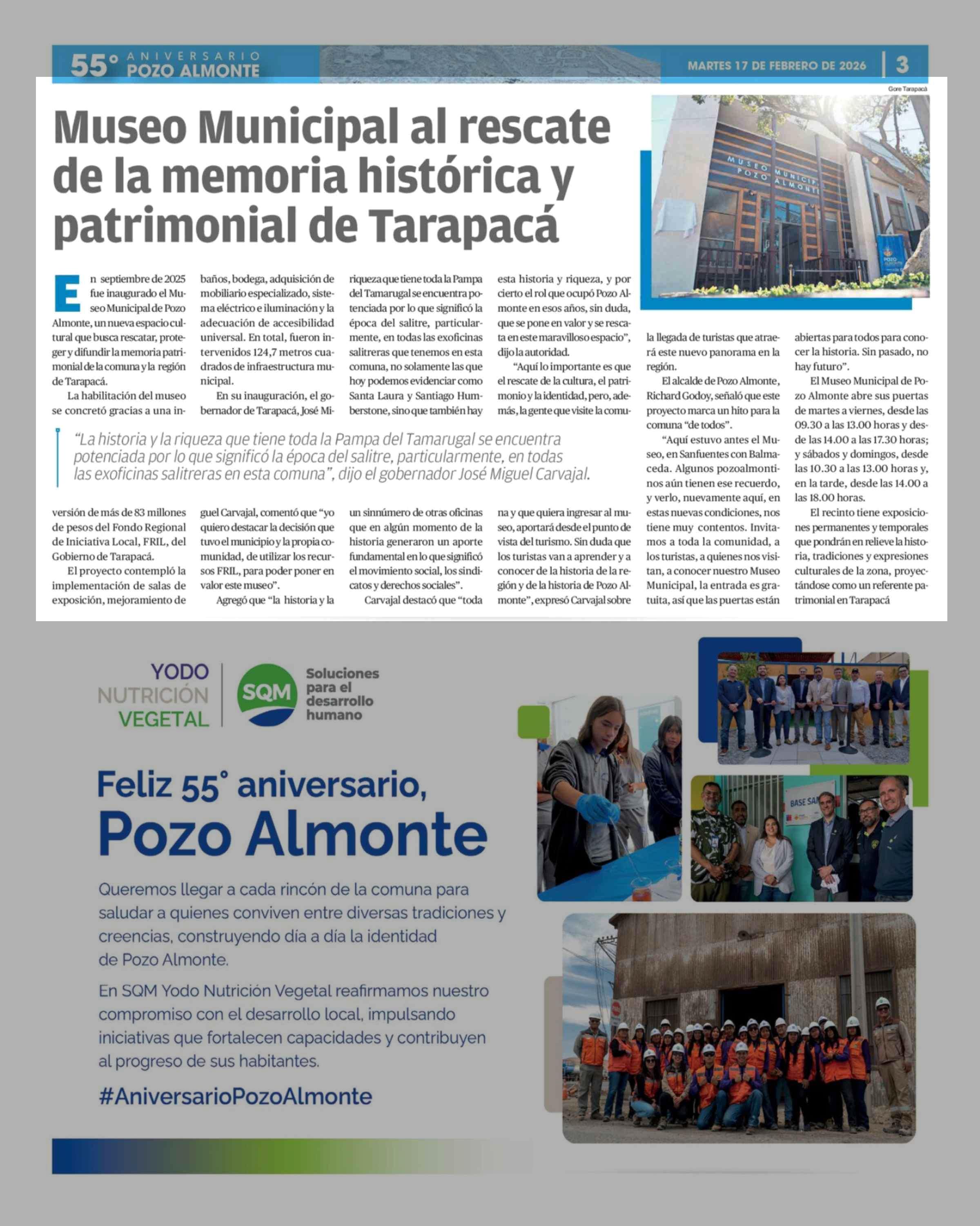 Fecha: 17-02-2026 Sector: Noticia general Región: Región de Tarapacá