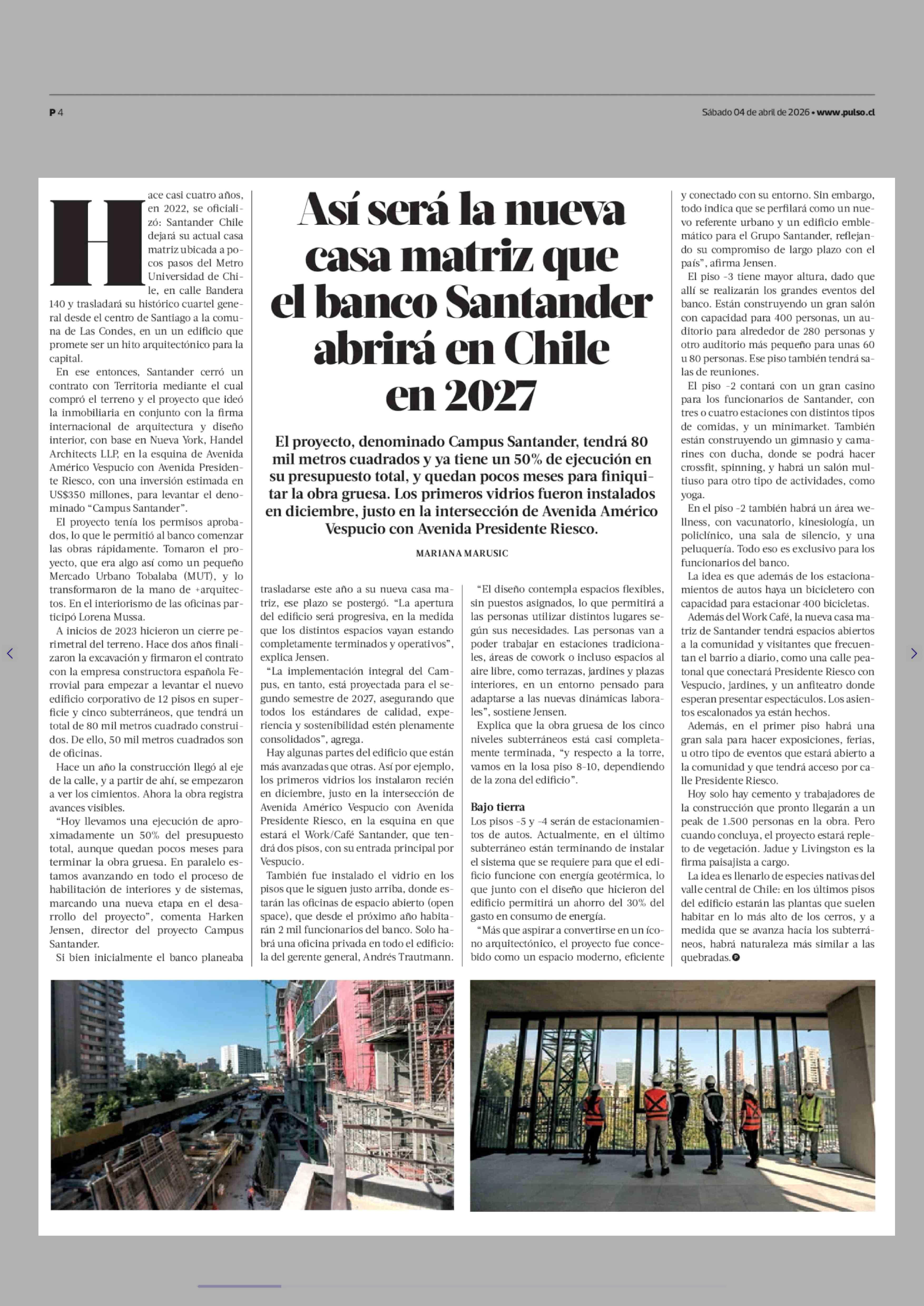 Así será la nueva casa matriz que el banco Santander abrirá en Chile en 2027 04-04-2026 La Tercera |